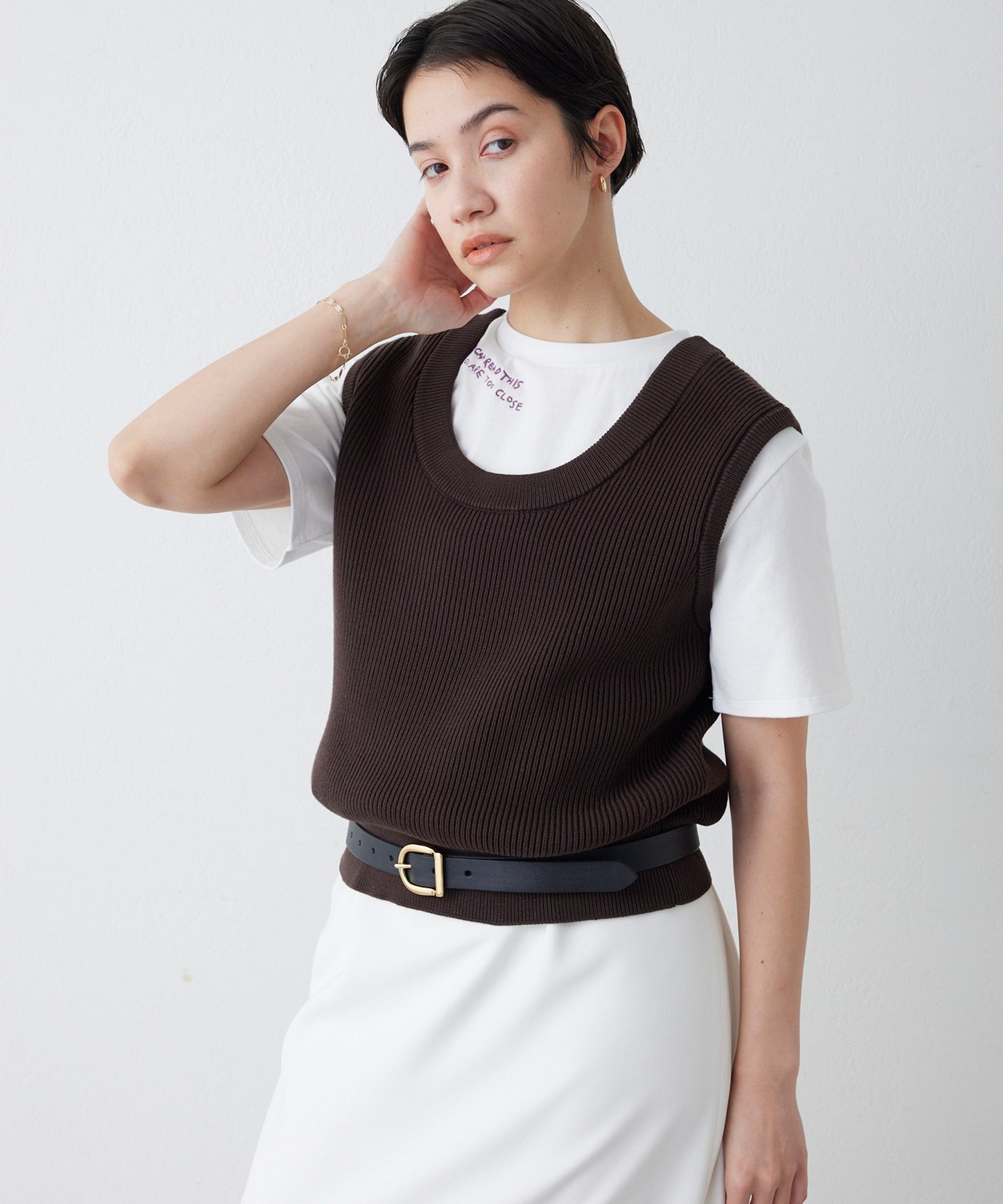 Трикотажное изделие без рукавов, которое можно носить как в многослойном образе, так и отдельно.