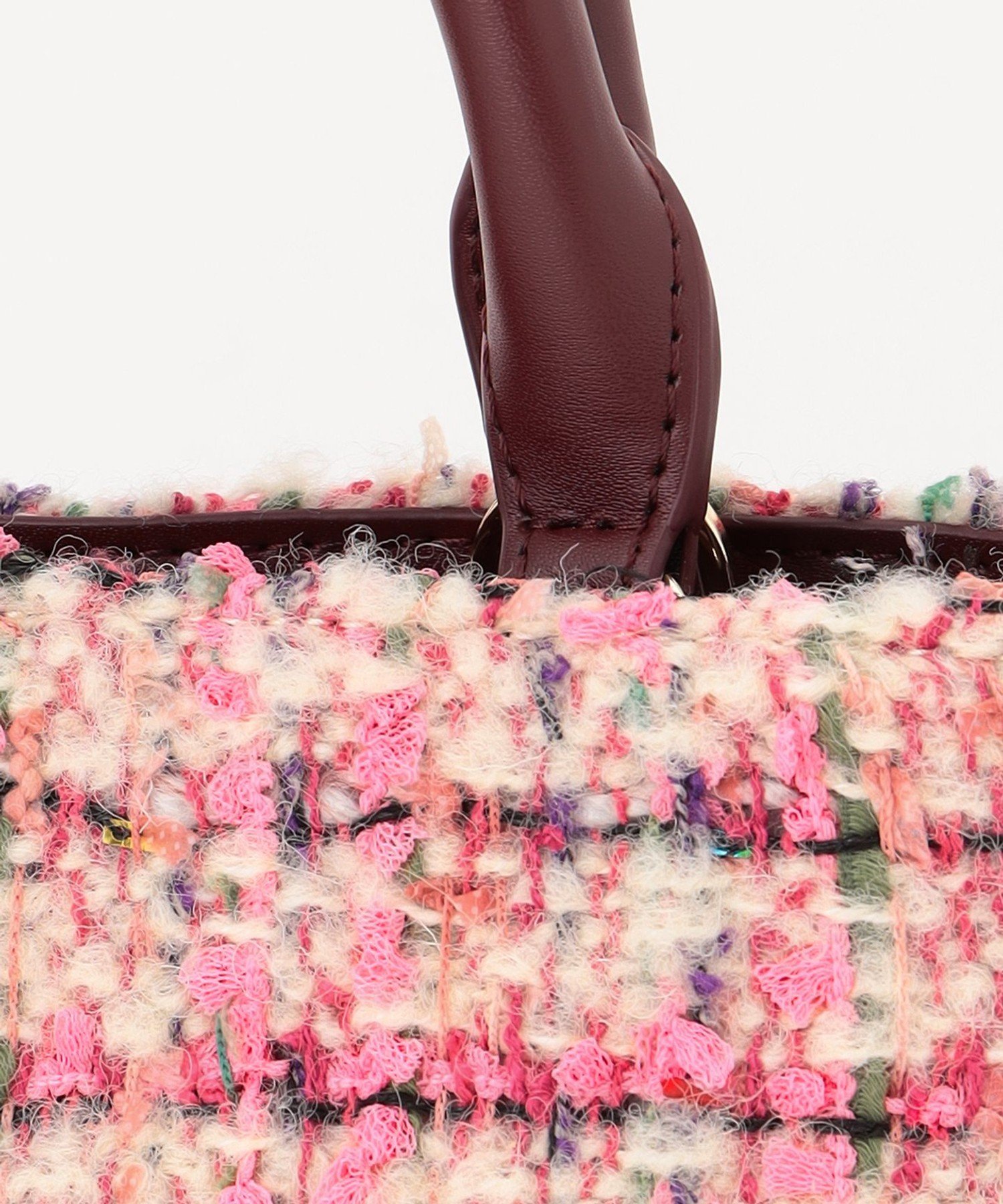 Черно-розовый твид, сотканный из смеси нитей и лент с различными оттенками, был выбран Юной для создания женственного, утонченного образа. Просто ношение этой сумки добавит вашему образу нотку гламура, как аксессуар.