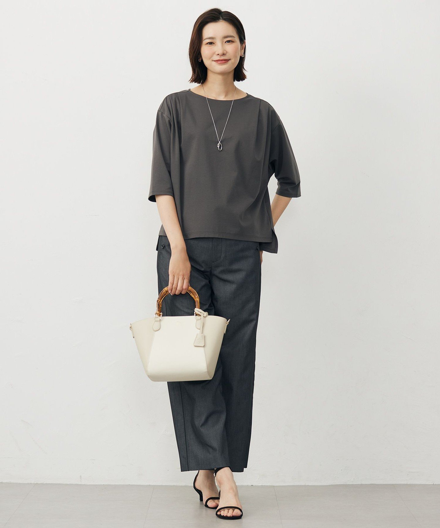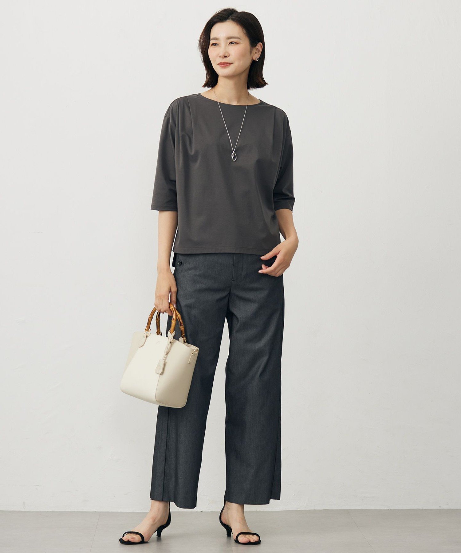 Материал: Изготовлен только из хлопка с очень длинными волокнами, компактное прядение минимизирует пушистость, в результате чего получается красивая блестящая и мягкая пряжа. Эта пряжа обладает превосходным балансом влагоудерживающих и влагоотводящих свойств. Эта хлопчатобумажная пряжа переплетена с пряжей OHSII, смесью двух типов полиэстера, разработанной компанией Toray, что позволяет создать удобную, немнущуюся одежду с превосходной эластичностью, драпировкой и упругостью. Трикотажное полотно изготовлено из плотного двойного трикотажа 40-го калибра, который помогает сохранять форму, и обработано антибактериальными, дезодорирующими и охлаждающими свойствами. Его воздухопроницаемость и быстрое высыхание делают его комфортным материалом для летней одежды. Товары из того же материала: Топ с высоким воротником (KKGJGA0800) Большой размер (KKGTGA0800) Маленький размер (KKG0GA0800) Топ-клеш (KKGJGA0802) Большой размер (KKGTGA0802) Маленький размер (KKG0GA0802) Примечание: Изображения товаров являются образцами и могут быть изменены без предварительного уведомления. Модель: H174 B80 W61 H86