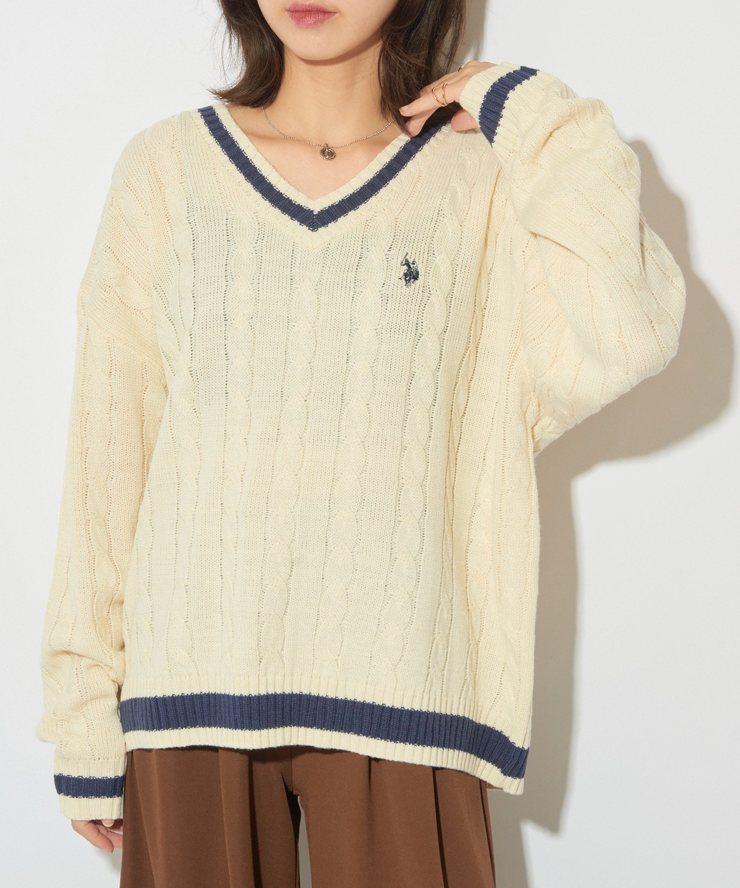Основные характеристикиЭта вещь подчеркнет сезонное настроение благодаря V-образному вырезу и узорам по низу и рукавам.Изготовлен из легкого 100% акрила, мягкий и пушистый на ощупь.Трехмерная текстура вязаного кроя создает простой, но элегантный и классический образ.Универсальная вещь, которую можно носить заправленной с рубашкой для создания преппи-образа, в повседневном стиле с джинсами и брюками или женственно с юбкой.Эта вещь добавит традиционный акцент вашим осенне-зимним ансамблям.