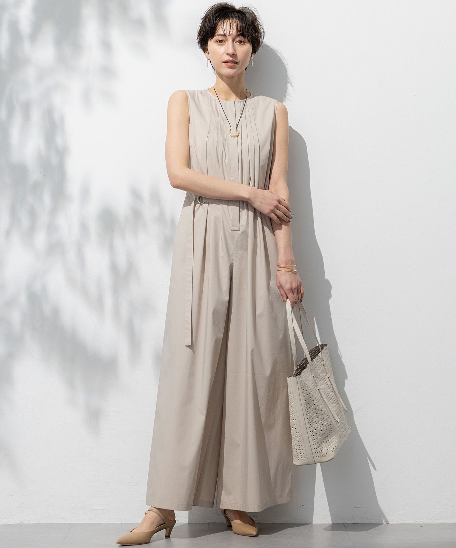 Этот комбинезон без рукавов изготовлен из дышащей ткани, напоминающей ткань пишущей машинки. Складки спереди добавляют элегантности. Широкие штанины создают ощущение платья, подчеркивая фигуру, не обнажая линий. Входящий в комплект пояс добавляет изящный акцент на талии и позволяет создать универсальный силуэт. Даже без пояса эта вещь излучает расслабленный, модный стиль. Рекомендуется также сочетать ее с подходящей короткой блузкой. Комбинезон можно стирать в машине. Доступен в трех цветах: освежающий темно-зеленый (#065), мягкий бежевый (#033) и шикарный черный (#005).