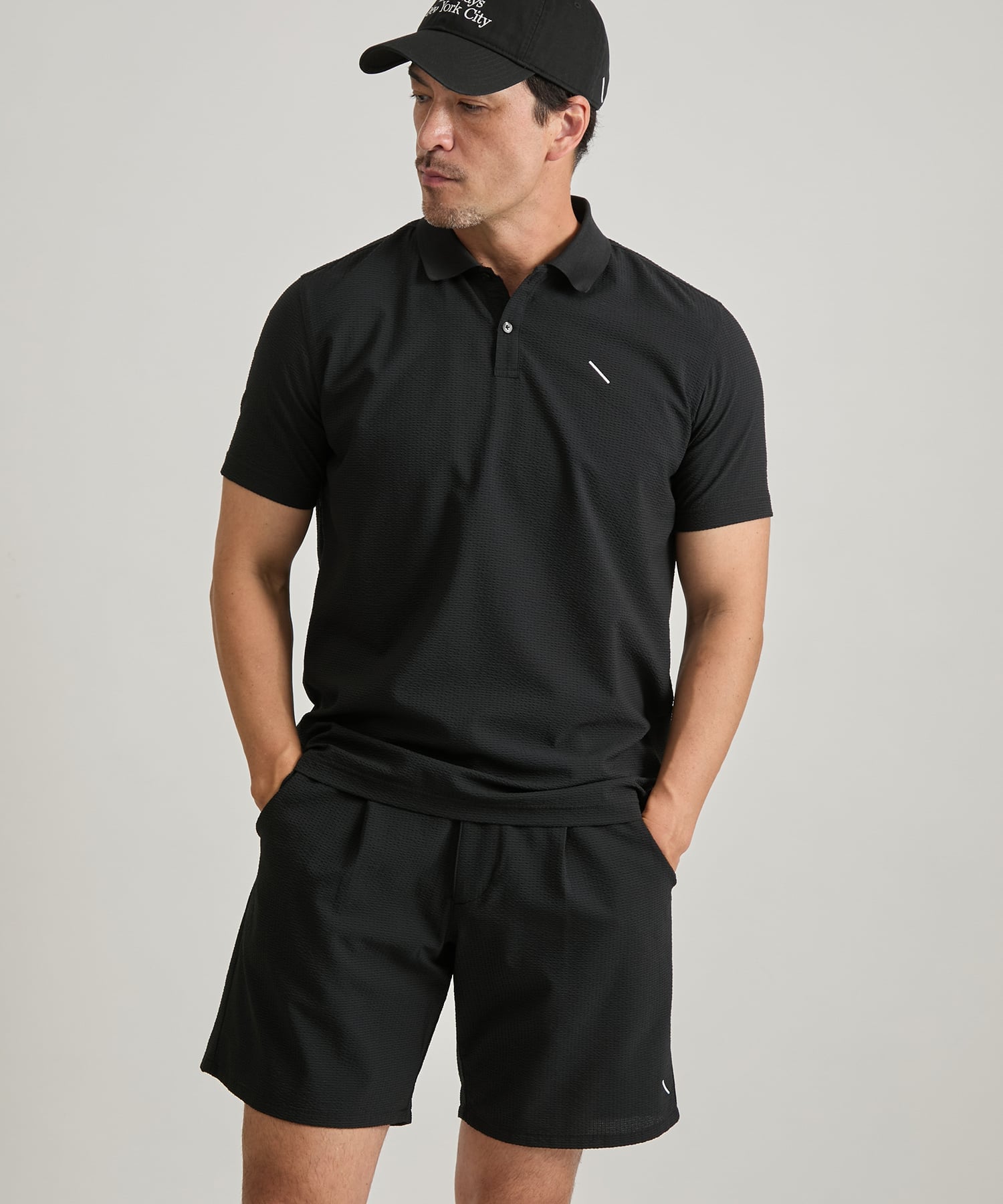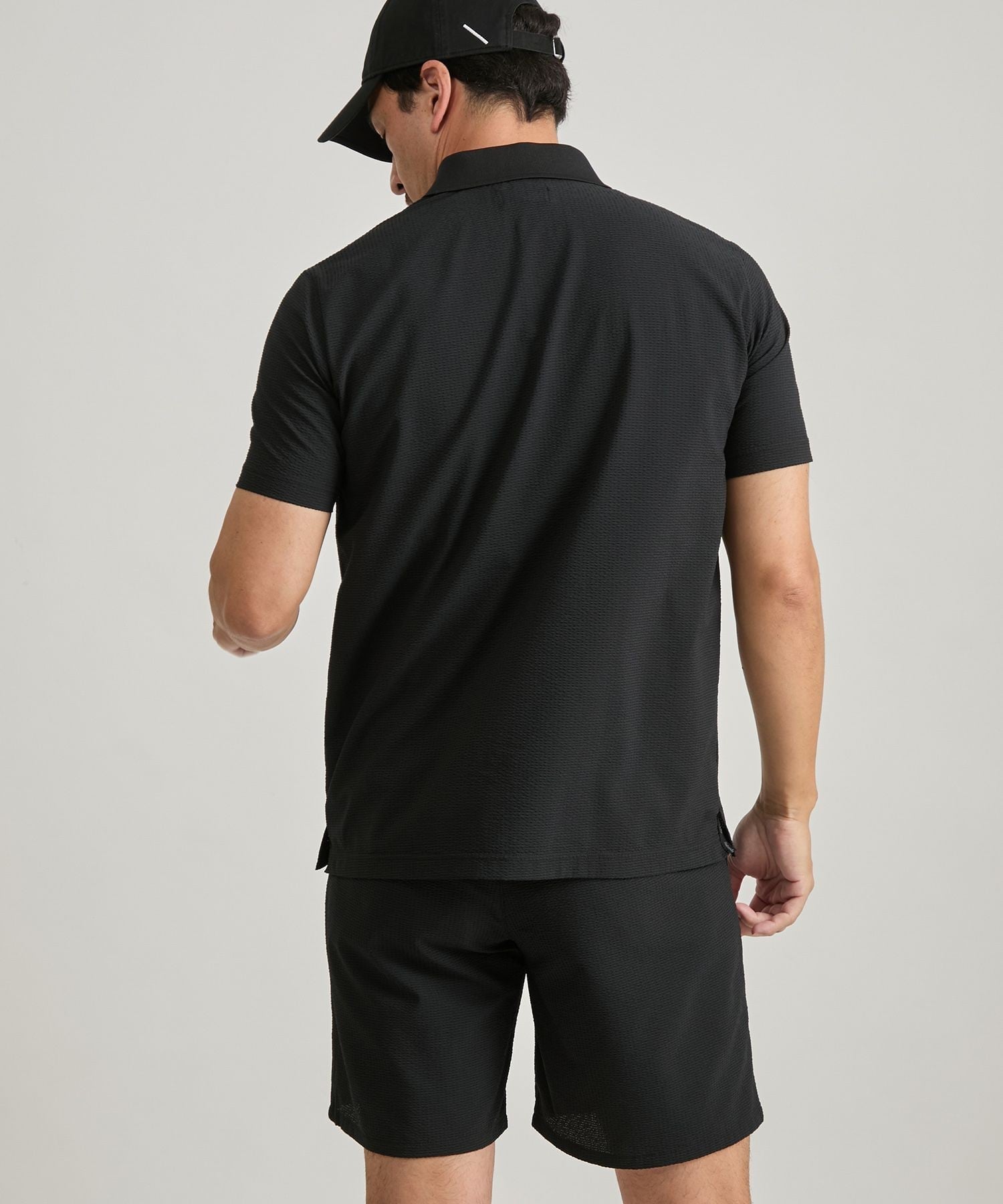 Поло с коротким рукавом из сирсакера, имеющего текстурированную поверхность и приятное на ощупь покрытие.