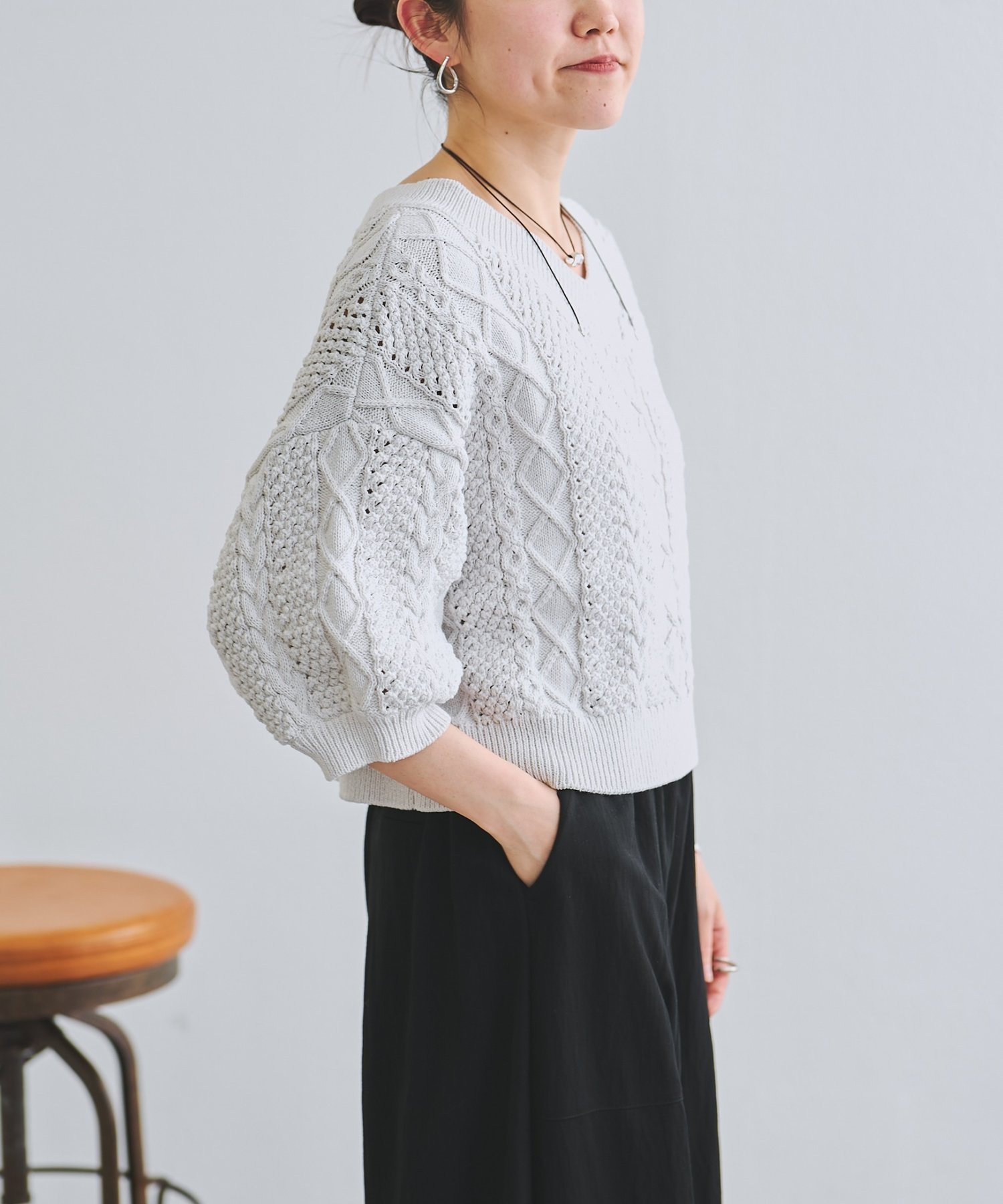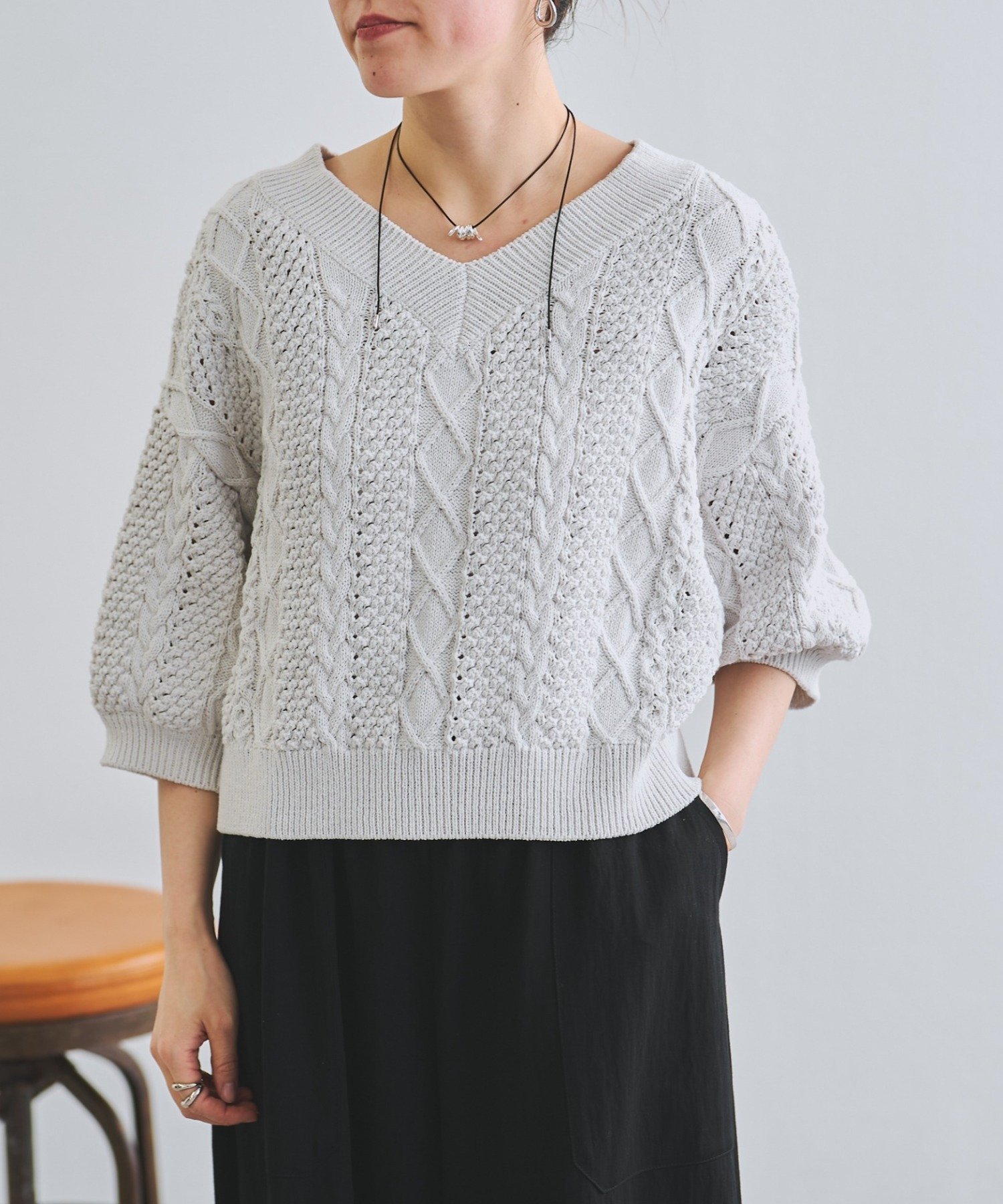 Выразительный вязаный пуловер с привлекательным трехмерным узором «косичка».