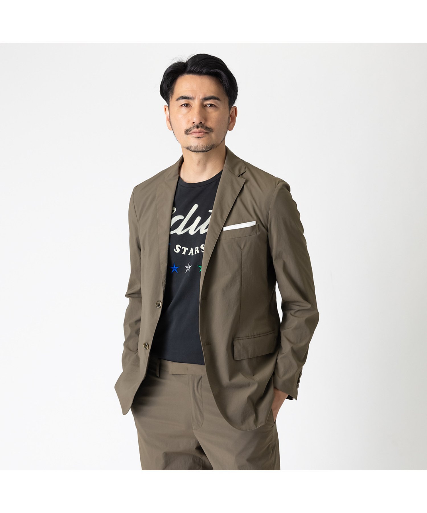 Подкладка выполнена из сетчатого материала, предотвращающего духоту, а прилагаемый карманный платок легко заправляется и вынимается, что делает куртку универсальной.