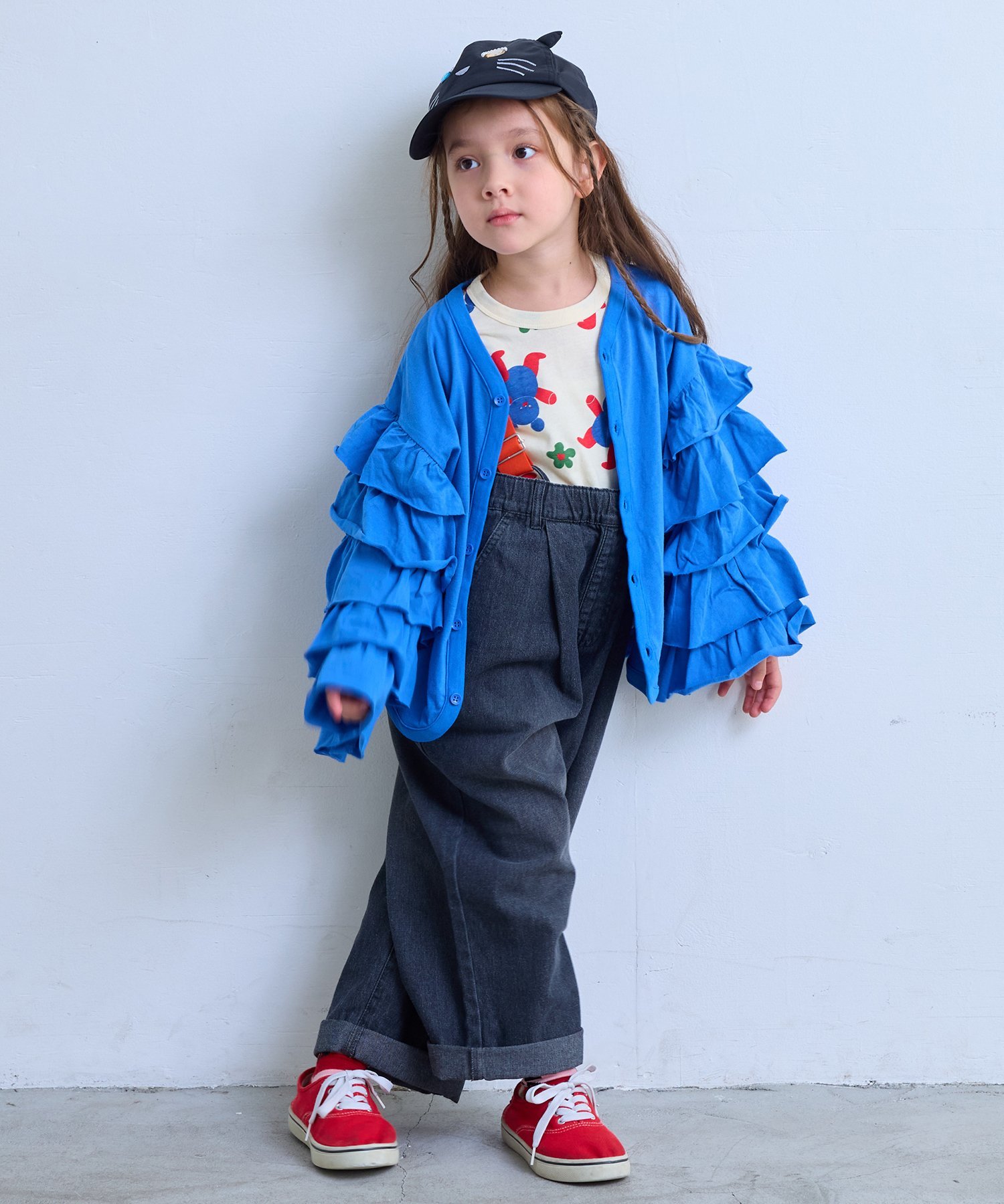 ДизайнМилая вещь с объемными оборками вдоль рукавов.Застежка на пуговицы спереди позволяет носить его как легкую куртку, а закругленный подол создает мягкое впечатление.Дизайн хорошо сочетается с простым силуэтом, создавая изысканный образ, не будучи при этом слишком слащавым.