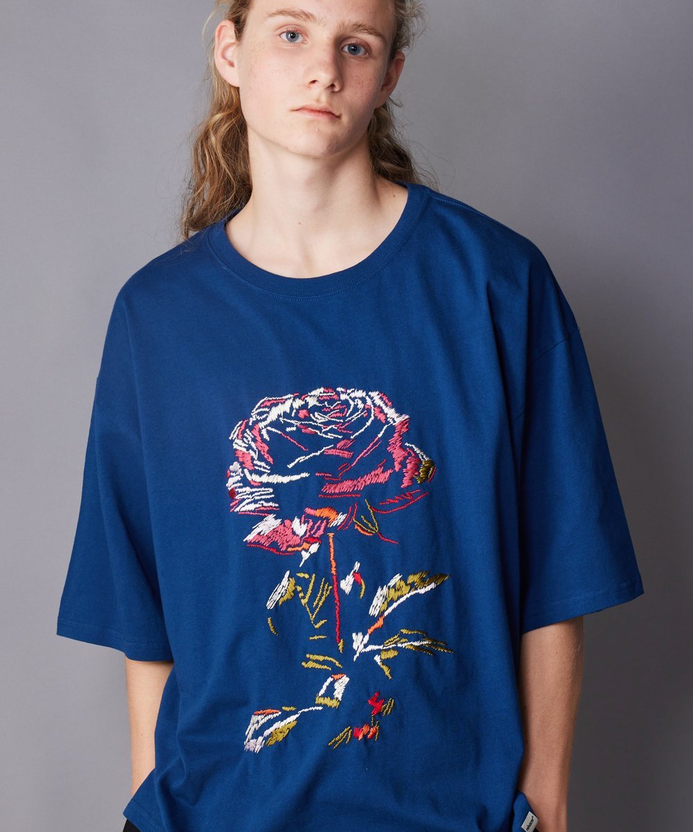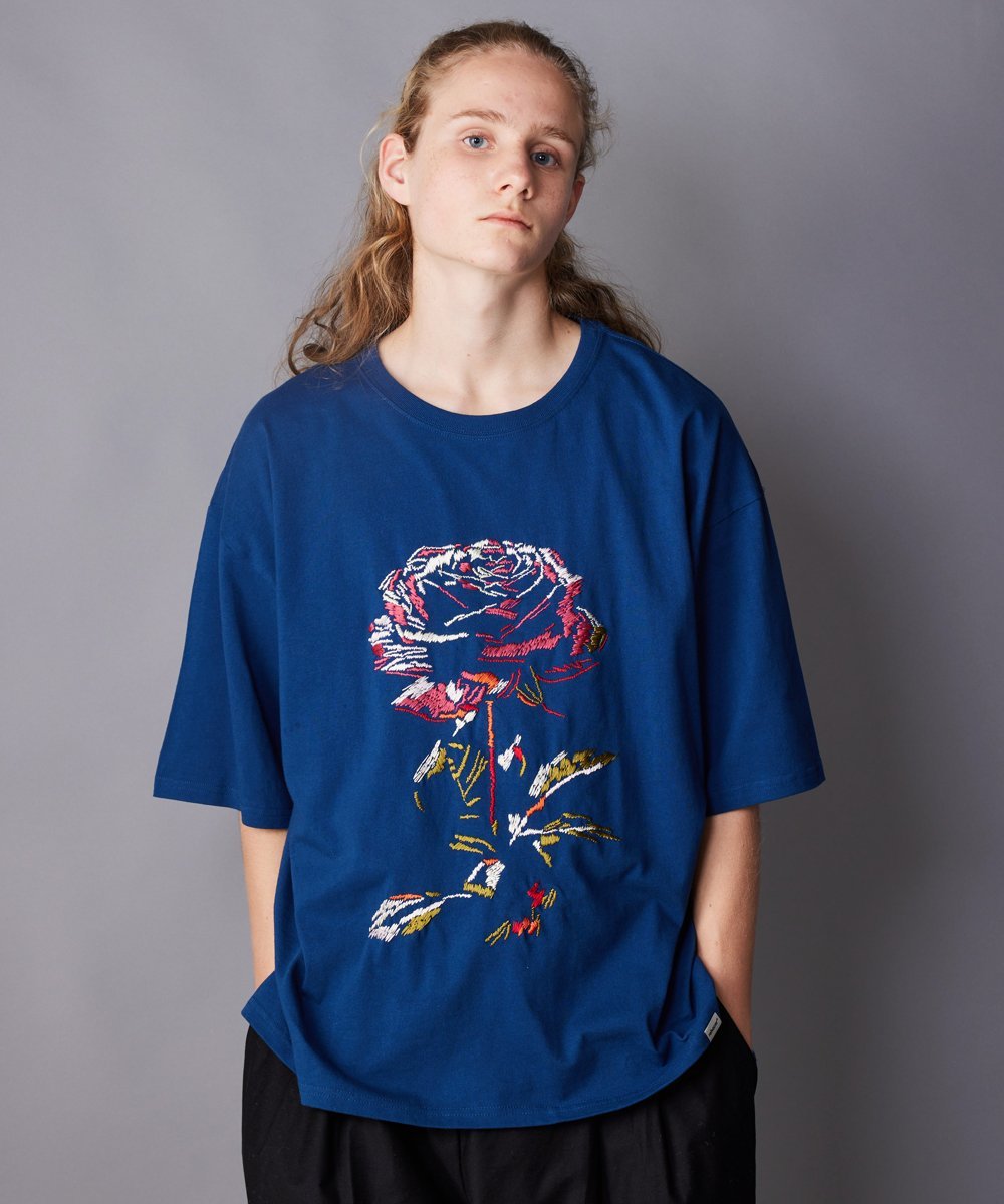 Шероховатая текстура вышивки придаёт ей уникальность, как произведению искусства, несмотря на её повседневный вид.
