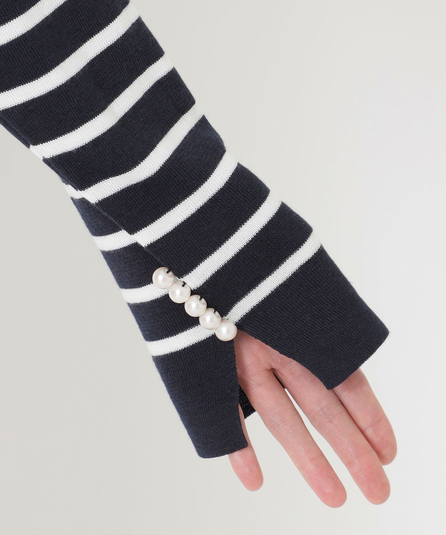 Боковые разрезы добавляют воздушности подолу, а манжеты украшены изящными жемчужными пуговицами.