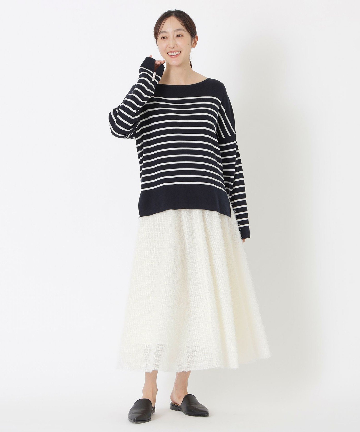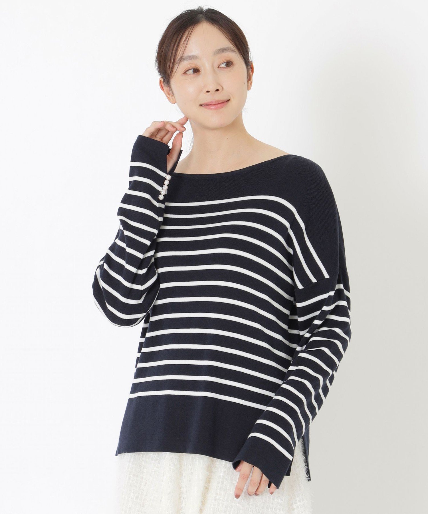 Этот пуловер прекрасно подчеркивает декольте, а не слишком открытый вырез создает элегантное впечатление.