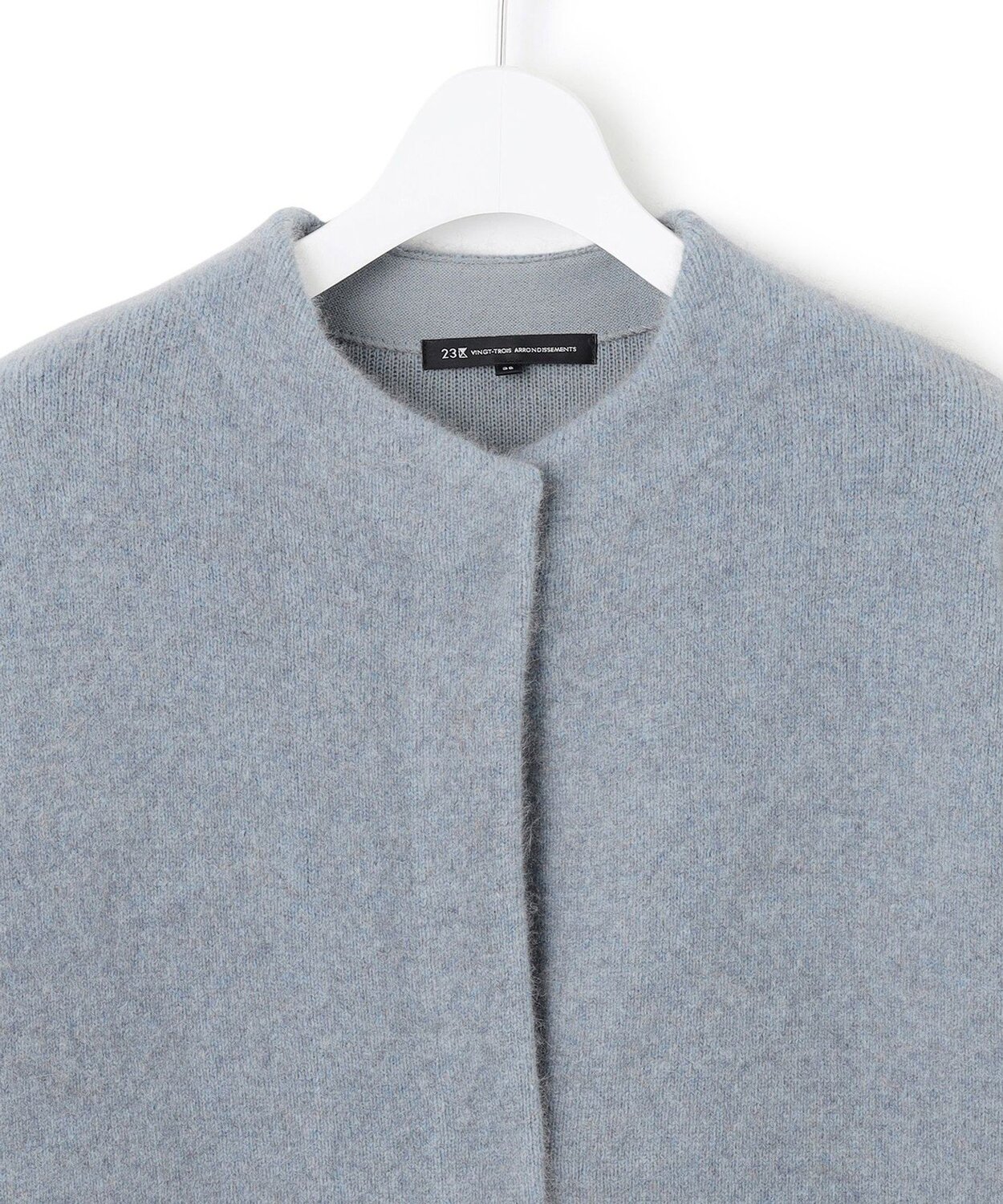 Эта вязаная верхняя одежда выполнена из склеенной вязки. Внешний слой изготовлен из шерсти енота, а внутренний — из легкого полиэстера. Это предотвращает прилипание меха к нижнему белью и позволяет легко надевать и снимать рукава. Элегантный воротник облегает вырез горловины, создавая слегка коконный силуэт, а длина закрывает бедра. Глубокий передний вырез отлично смотрится как в расстегнутом, так и в застегнутом на крючок виде, что позволяет создавать множество вариантов стилизации. Встроенные карманы удобны для хранения мелких предметов. Доступна в четырех цветах: мягкий слоновый (#002), серый (#004), который добавит глубины вашему образу, натуральный бежевый (#033) и светло-голубой (#072), который добавит нотку изысканности.