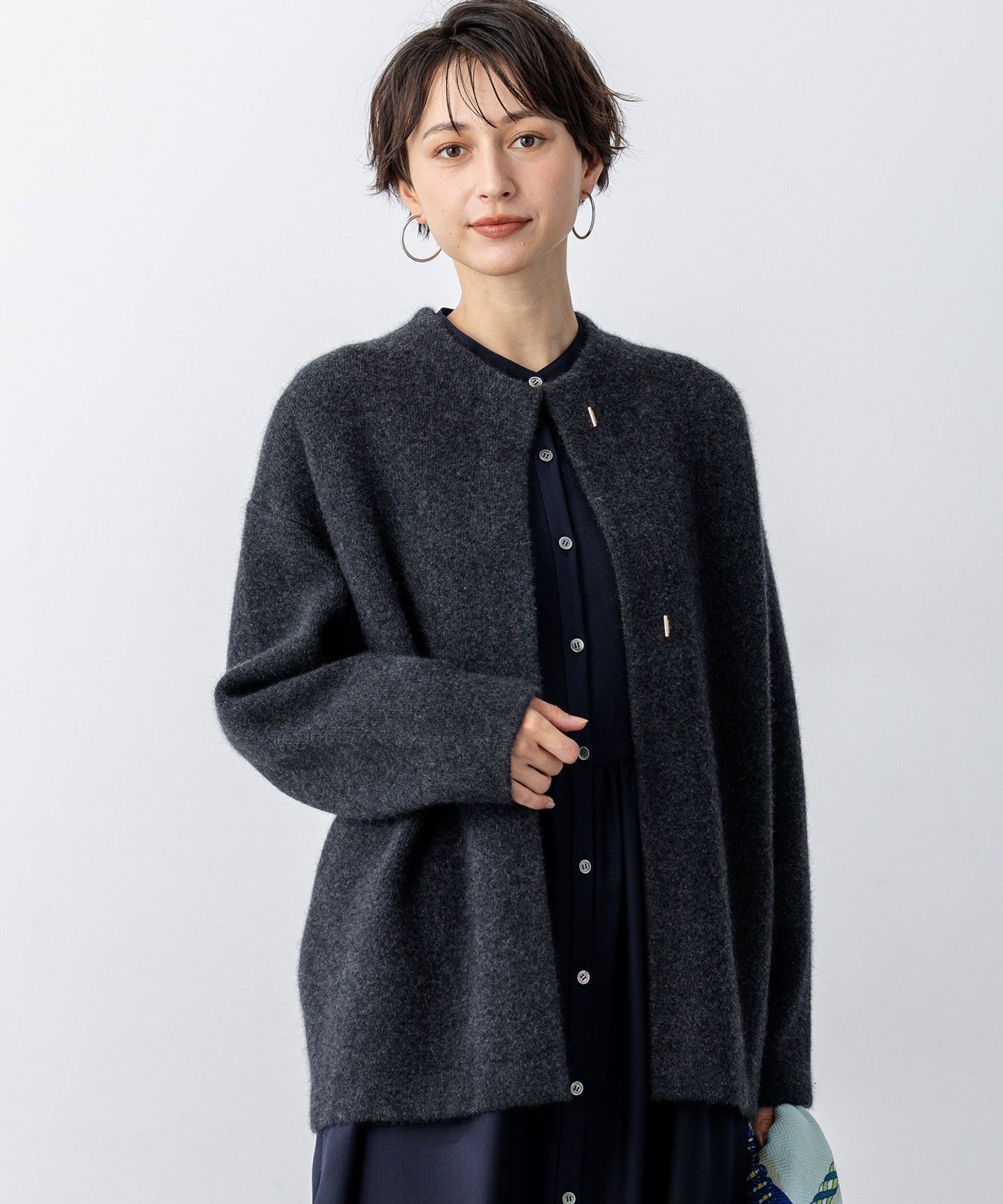 Эта вязаная верхняя одежда выполнена из склеенной вязки. Внешний слой изготовлен из шерсти енота, а внутренний — из легкого полиэстера. Это предотвращает прилипание меха к нижнему белью и позволяет легко надевать и снимать рукава. Элегантный воротник облегает вырез горловины, создавая слегка коконный силуэт, а длина закрывает бедра. Глубокий передний вырез отлично смотрится как в расстегнутом, так и в застегнутом на крючок виде, что позволяет создавать множество вариантов стилизации. Встроенные карманы удобны для хранения мелких предметов. Доступна в четырех цветах: мягкий слоновый (#002), серый (#004), который добавит глубины вашему образу, натуральный бежевый (#033) и светло-голубой (#072), который добавит нотку изысканности.