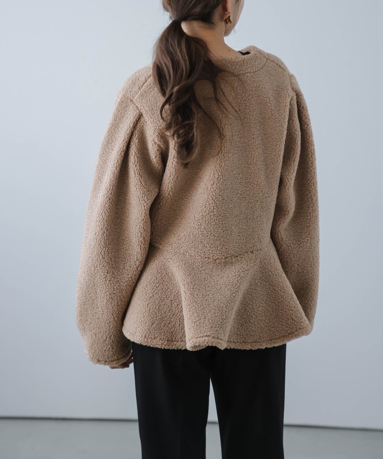 Милый взрослый жакет с очаровательной баской и пушистым материалом боа.