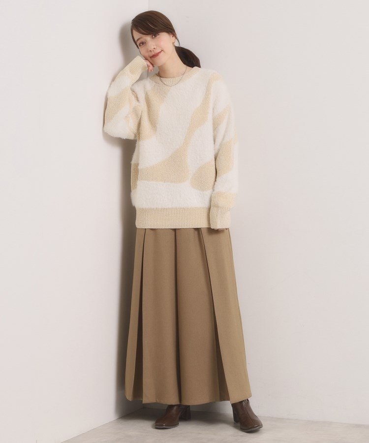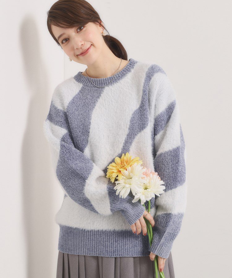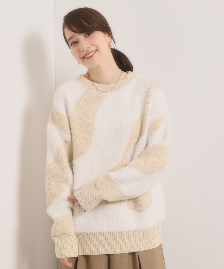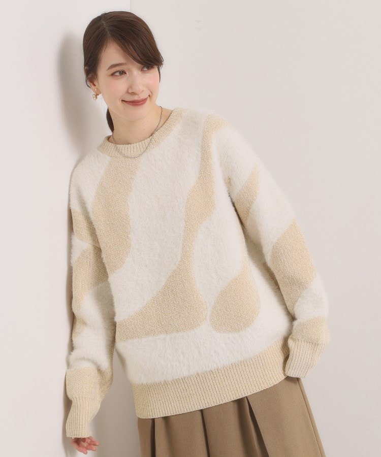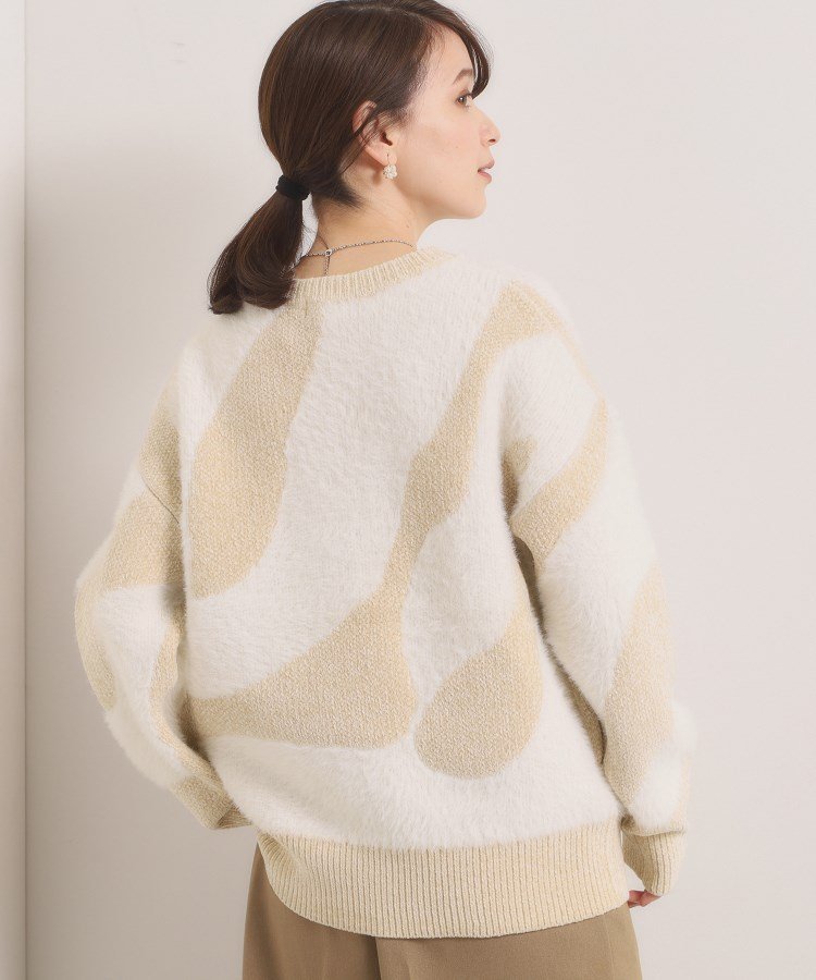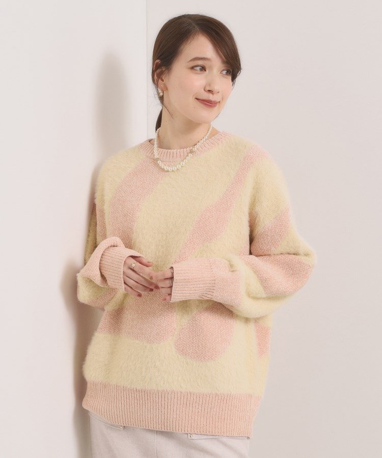 Жаккардовый свитер, изготовленный из комбинации пряжи из перьев и велюровой мохеровой пряжи.