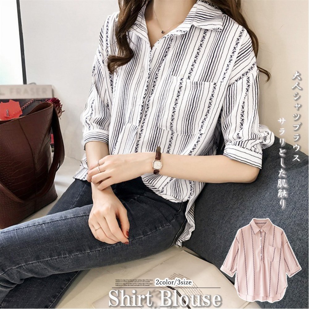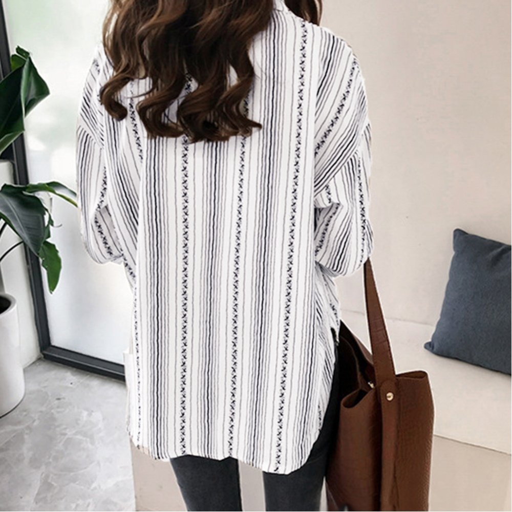 Эта полосатая блузка-рубашка с рукавами 3/4 и V-образным вырезом приятна на ощупь.