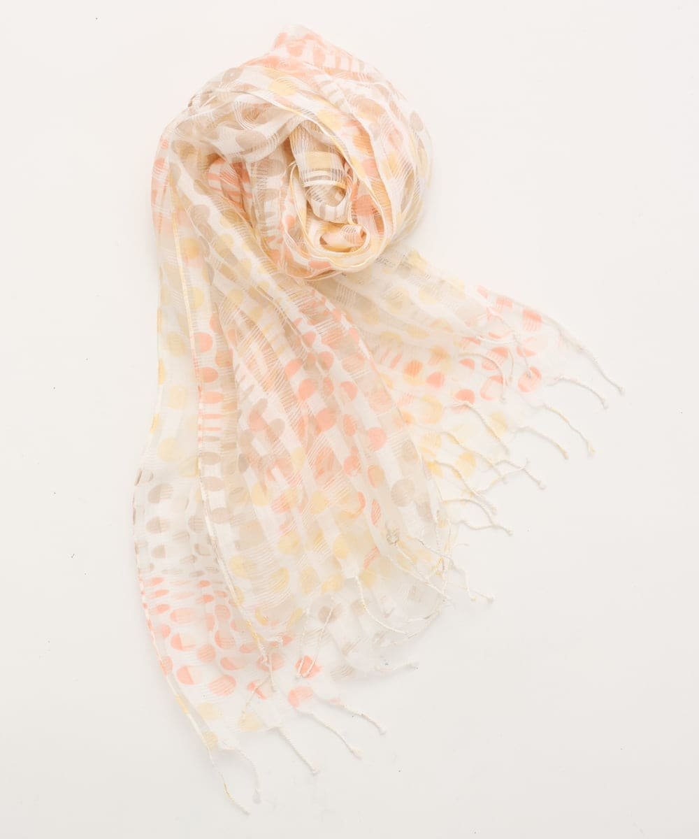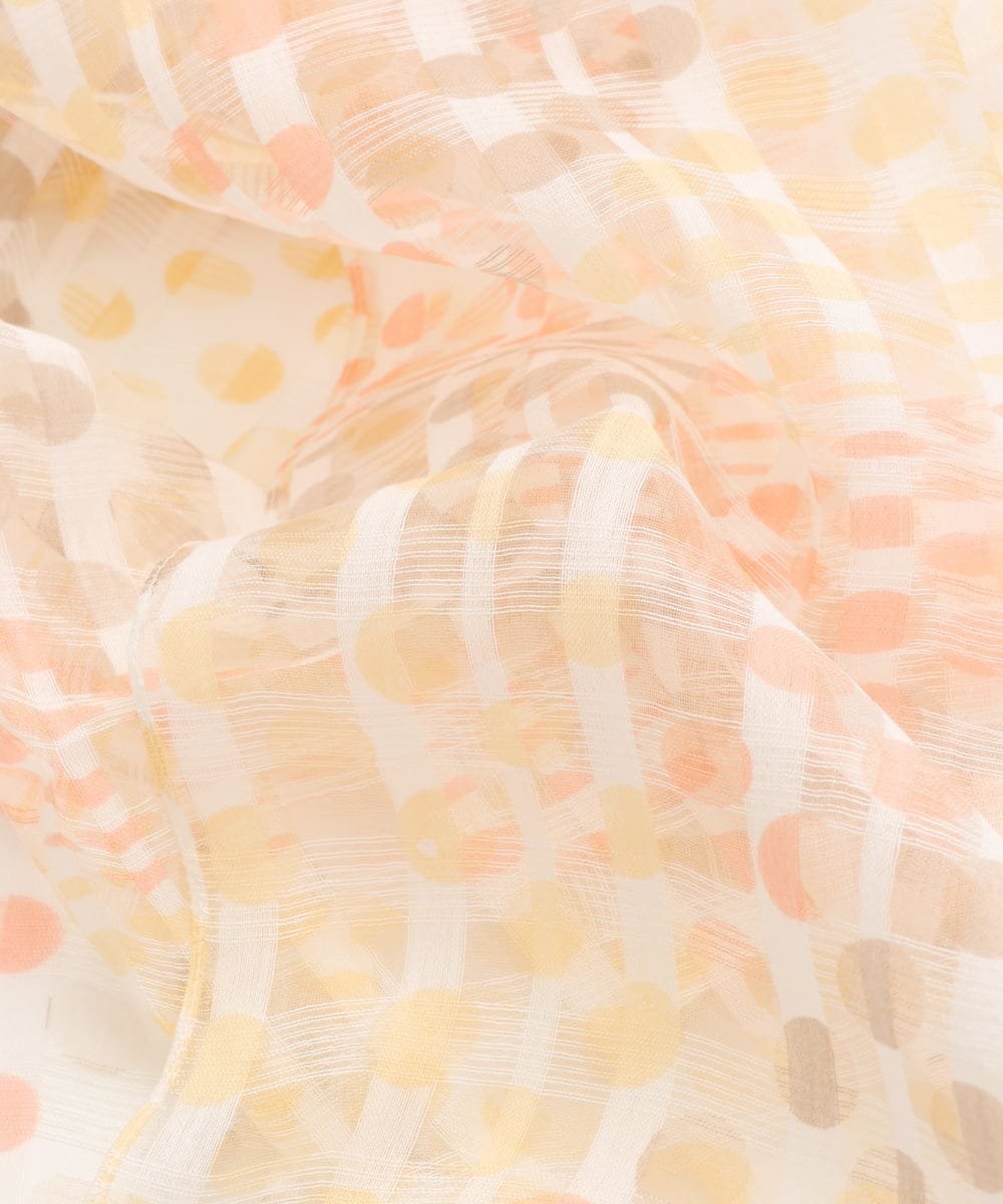 На основе, напоминающей теневую рамку, напечатан красочный узор в горошек. Благодаря полупрозрачной текстуре, эта накидка идеально подходит для того, чтобы подчеркнуть воротник.