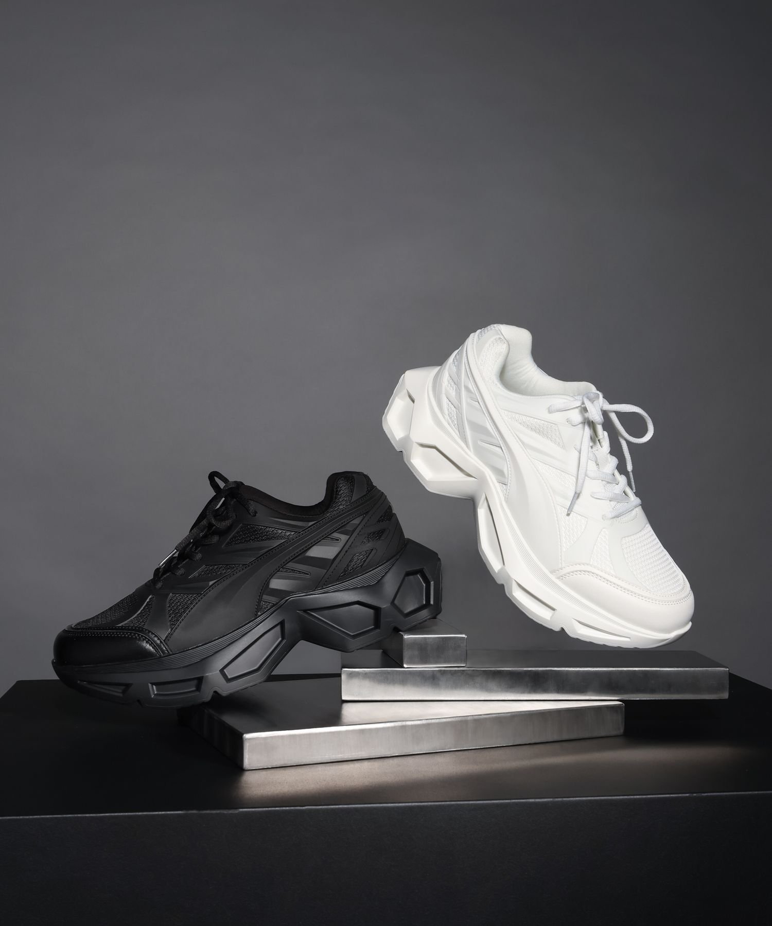 Мы хотели привнести ощущение чего-то необычного в повседневность, поэтому создали эти кроссовки на платформе с нуля, вдохновившись изысканной архитектурой города. Подошва в виде здания.
