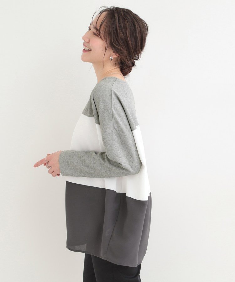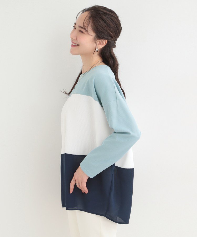 Эта футболка с длинными рукавами отличается привлекательным сочетанием цветов. Трехслойный дизайн создает простой, но изысканный образ. Идеально подходит для самых разных случаев, от повседневной носки до выходных прогулок. [Дизайн] Футболка имеет трехслойный горизонтальный дизайн с цветовыми блоками. Свежее сочетание цветов делает ее эффектной вещью. Свободный силуэт с классическим круглым вырезом и приспущенными плечами обеспечивает удобную посадку с достаточным пространством. Свободные рукава эффективно скрывают любые стесняющие движения плечи. Несмотря на повседневный стиль, лаконичный силуэт создает чистый, аккуратный образ. [Стиль] Повседневные образы: Сочетайте с джинсами или чиносами для расслабленного повседневного образа. Сочетайте с кроссовками для идеального образа для шопинга или прогулок с детьми.