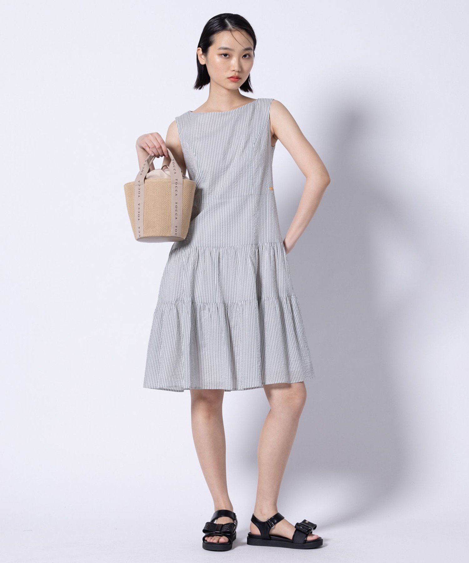Изготовлено из классического весенне-летнего материала TOCCA, Miracle Wave, 100% хлопковой ткани с рисунком в виде футбольных мячей. После стирки просто расправьте и повесьте сушиться; глажка не требуется. Отличается легкостью, мягкостью и прохладой. Текстурированная ткань с рисунком в виде футбольных мячей как в клетку, так и в полоску создает нежный, шикарный образ.