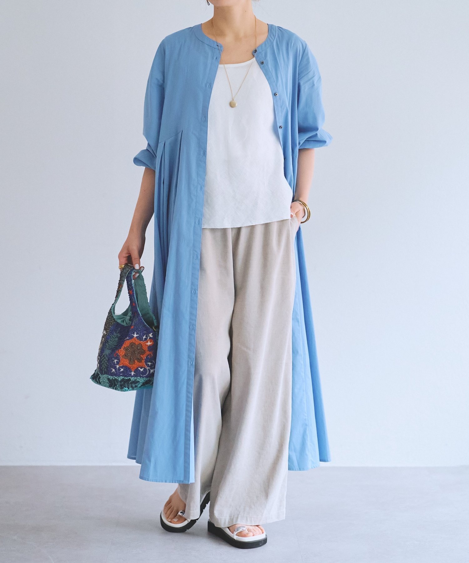 Передняя часть застегивается на пуговицы, поэтому его можно носить как платье или оставить расстегнутым как легкий жакет.