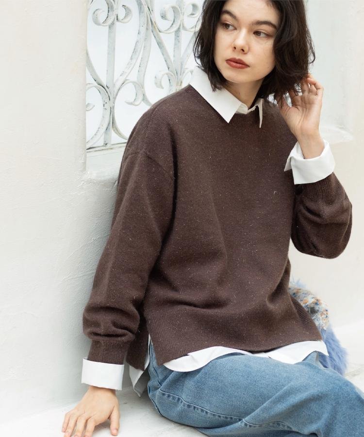 Простой вязаный пуловер оптимальной толщины с легким блеском для элегантного и гламурного образа.