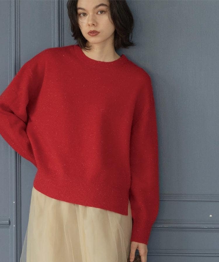 Простой вязаный пуловер оптимальной толщины с легким блеском для элегантного и гламурного образа.