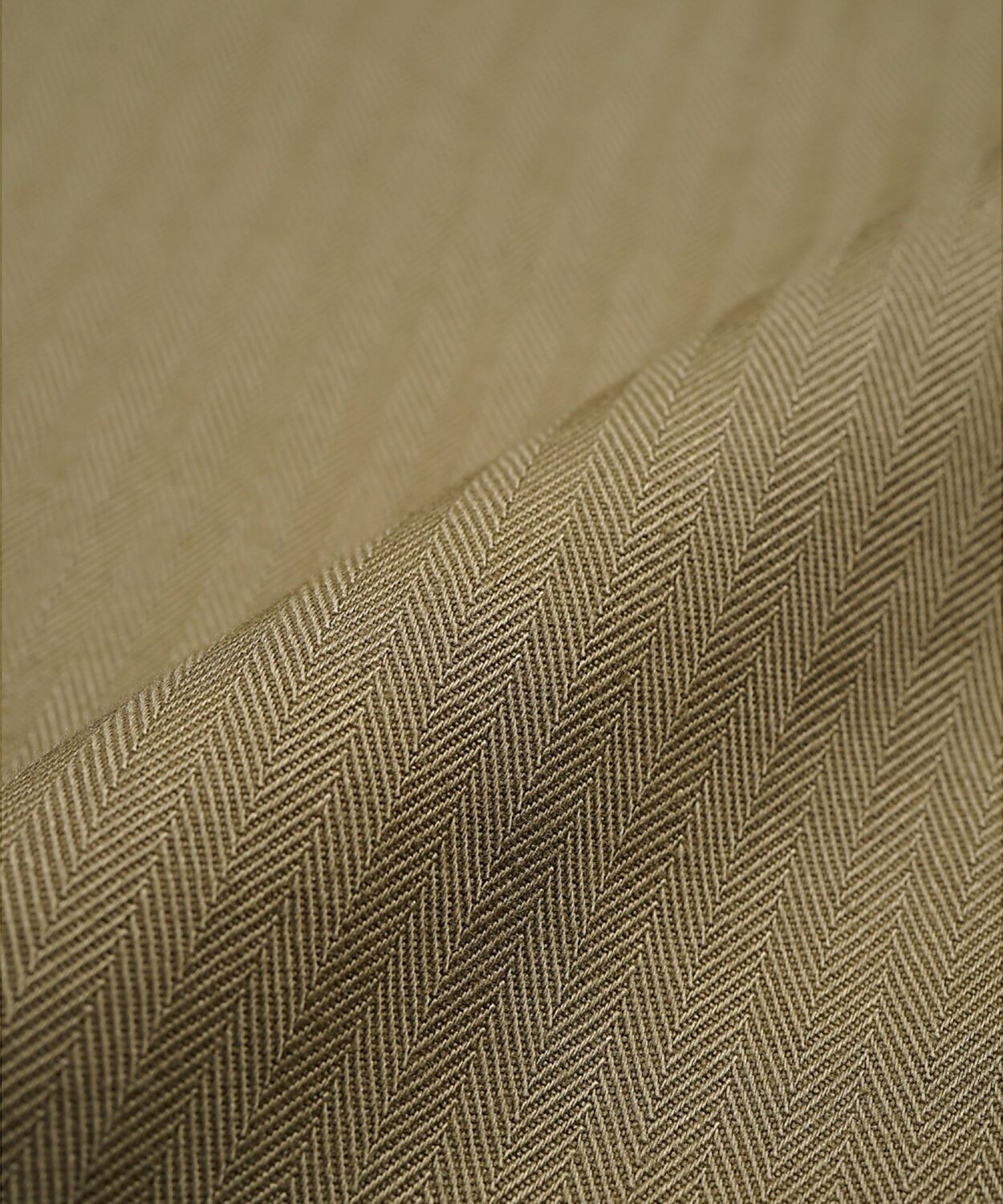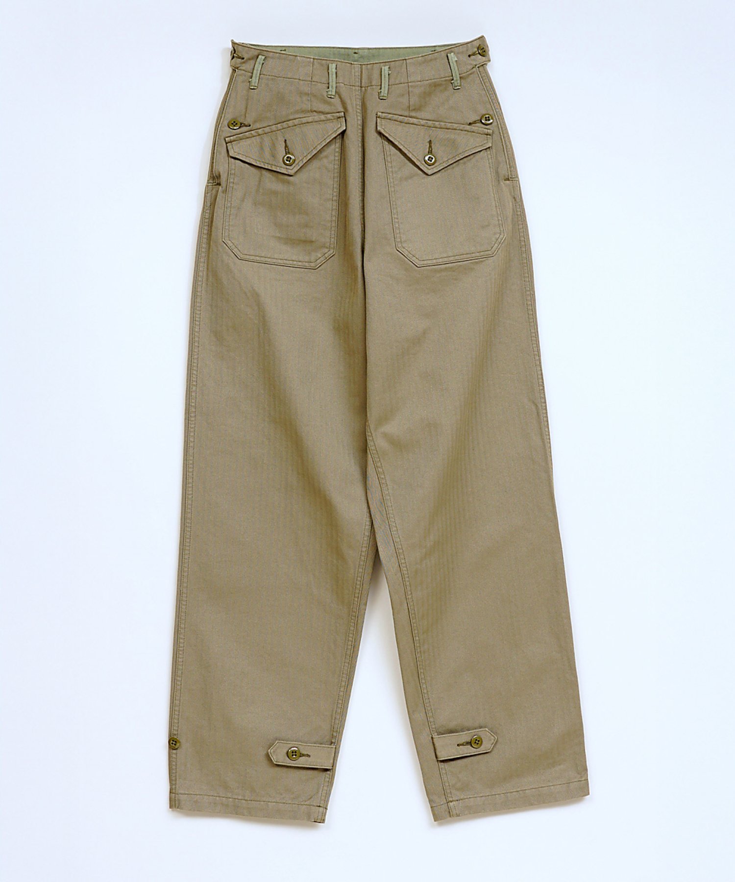 Эти брюки-карго созданы по образцу европейских военных брюк, но с женственными деталями. Зауженный силуэт, сужающийся к низу, создает лаконичный образ. Функциональный дизайн включает в себя потайной карман для мелочи внутри правого кармана и регулируемые пуговицы по низу. Четкие линии позволяют легко сочетать эти брюки с различными стилями. Используемая ткань вдохновлена тканью в елочку, которая использовалась в рабочей форме морской пехоты США во время Второй мировой войны. Она прочная, но легкая, а уникальный тканый узор добавляет изысканности.