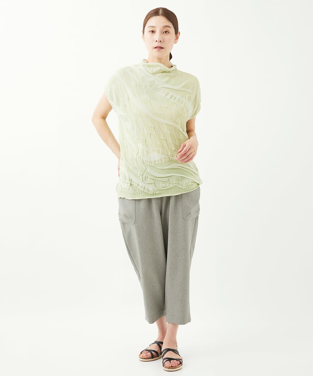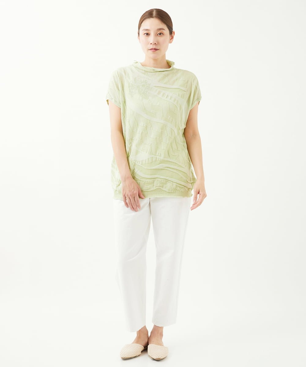Этот дизайнерский трикотаж сам по себе дополнит ваш образ. Его можно носить как в повседневной жизни, так и в элегантном стиле, что делает его универсальным для различных случаев. Его можно носить с любыми брюками или юбками. Сочетание с яркими белыми вещами создаст освежающий летний образ.