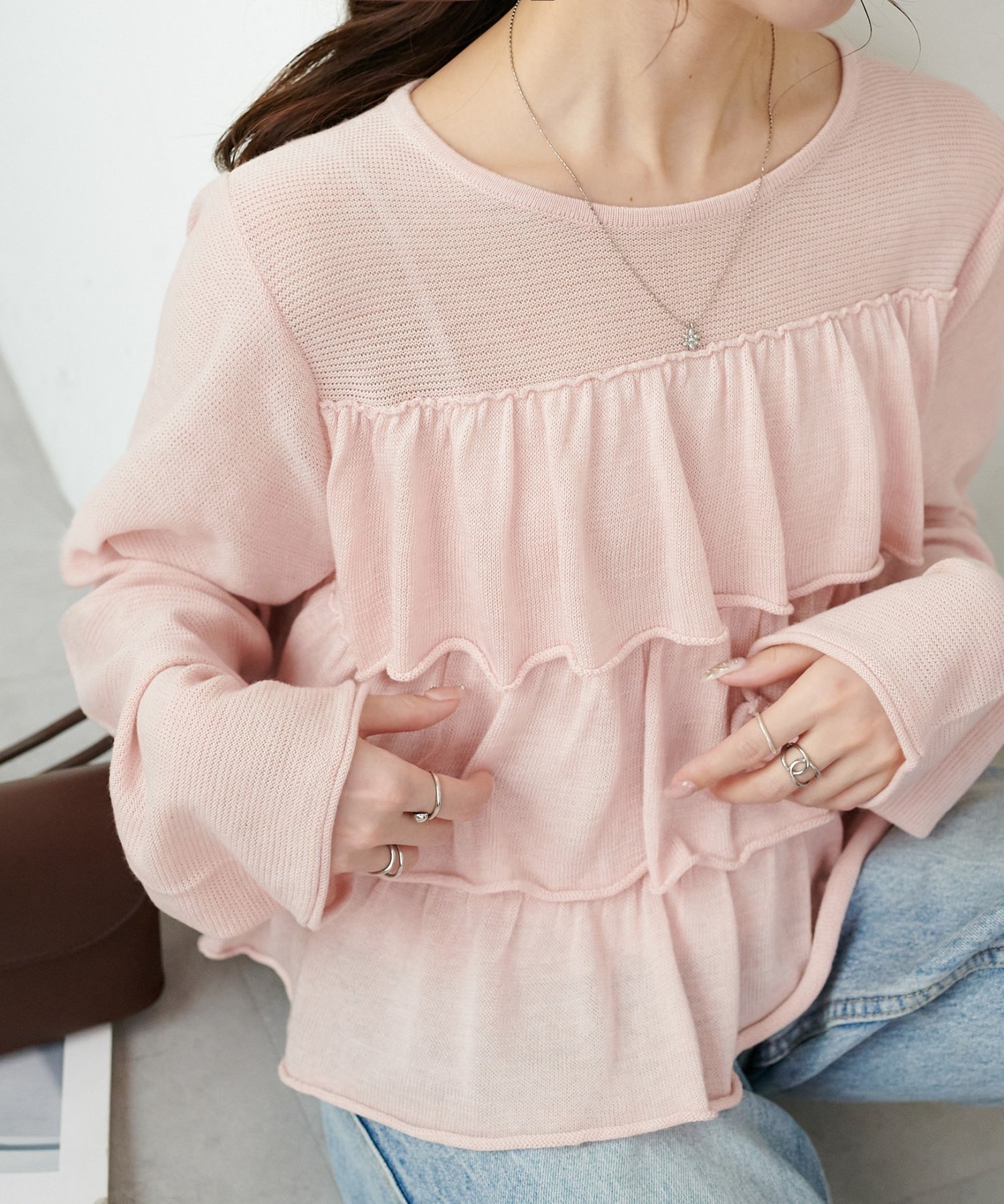 Сотрудник ростом 149 см: Длина достаточно большая, чтобы слегка прикрывать бедра, что позволяет легко сохранять равновесие даже людям невысокого роста. Оборки перекрывают друг друга, но горловина прозрачная, поэтому вы можете наслаждаться ощущением легкости♪
