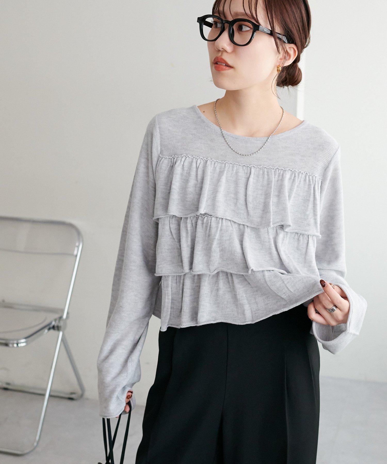 Сотрудник ростом 149 см: Длина достаточно большая, чтобы слегка прикрывать бедра, что позволяет легко сохранять равновесие даже людям невысокого роста. Оборки перекрывают друг друга, но горловина прозрачная, поэтому вы можете наслаждаться ощущением легкости♪