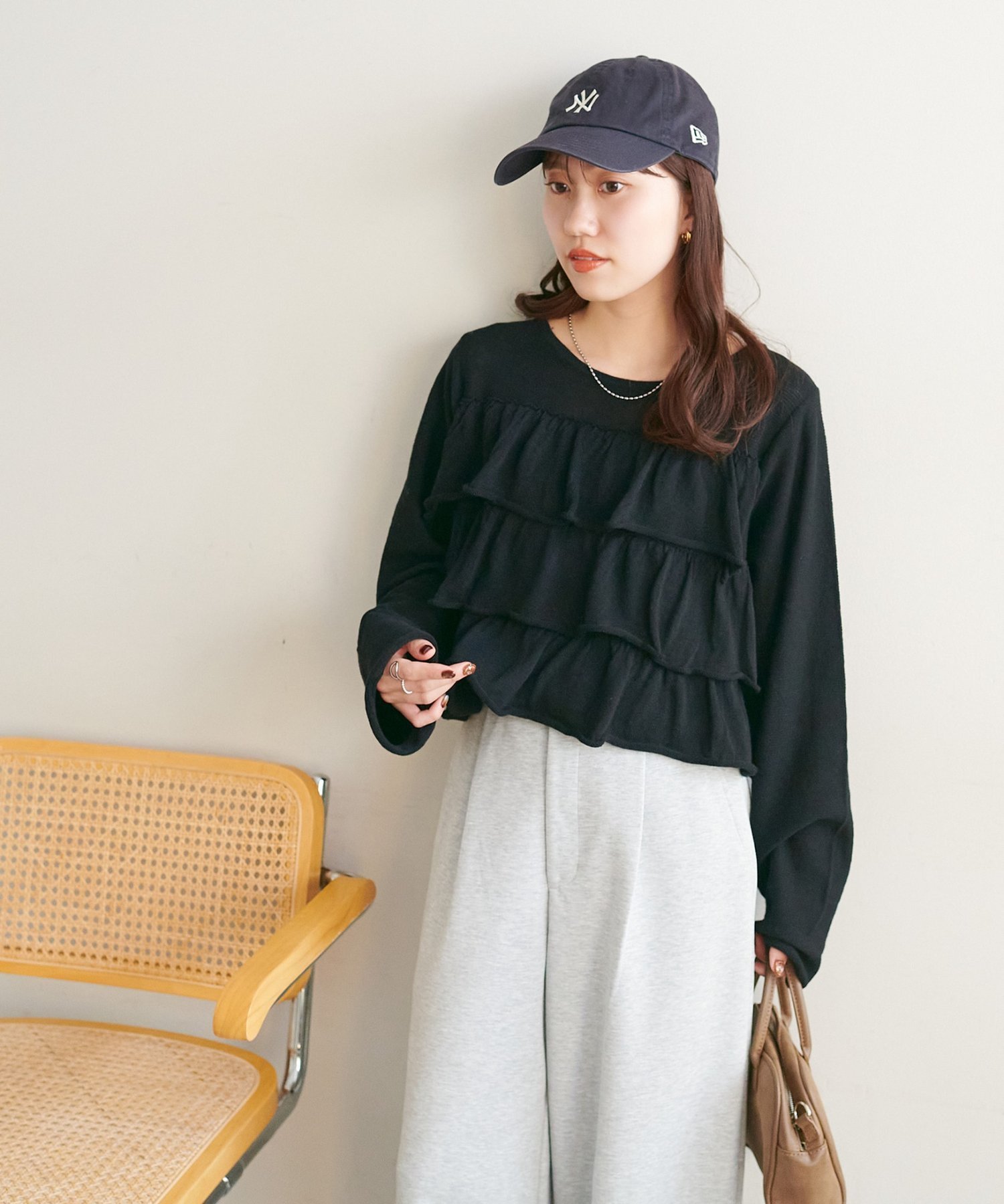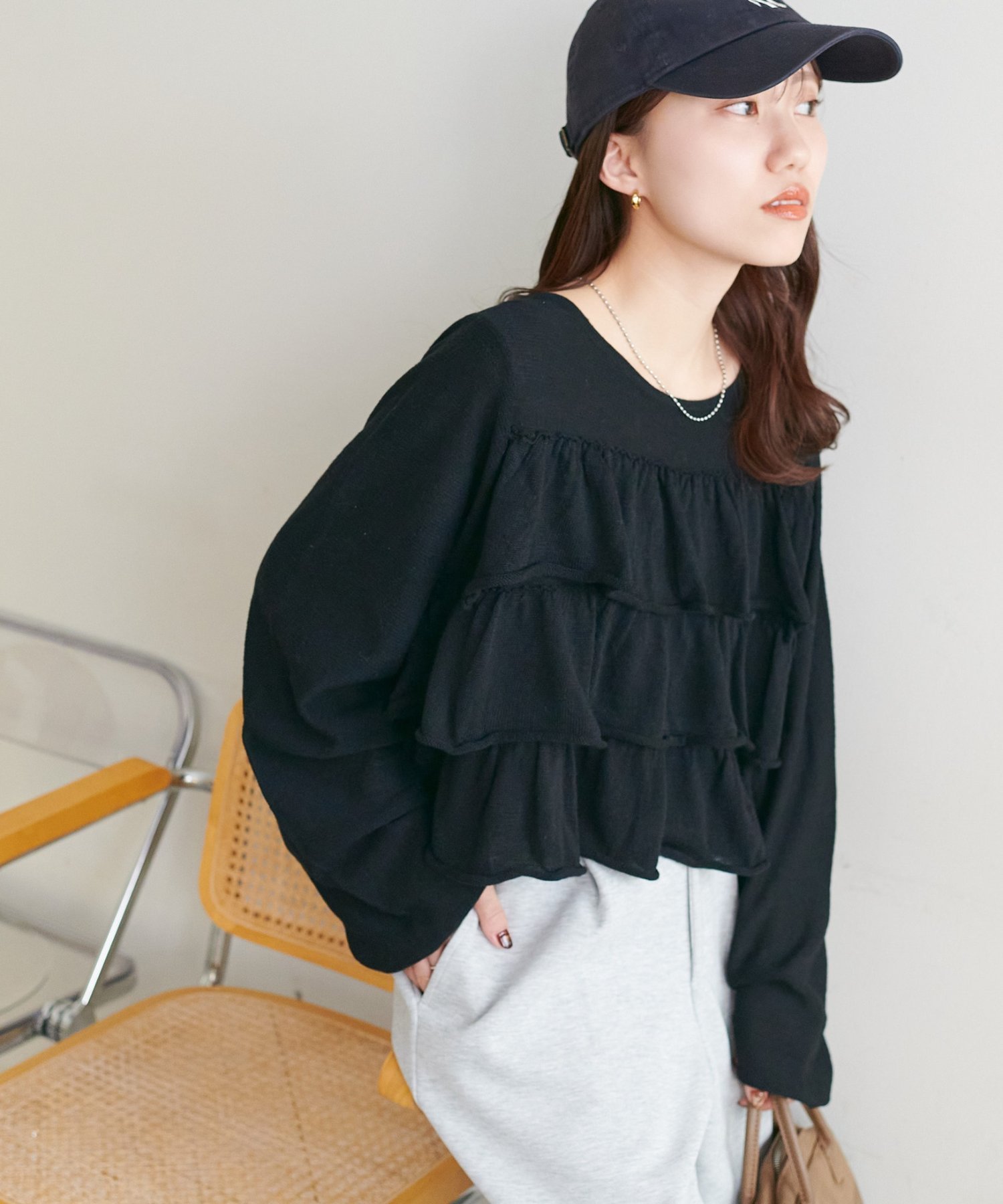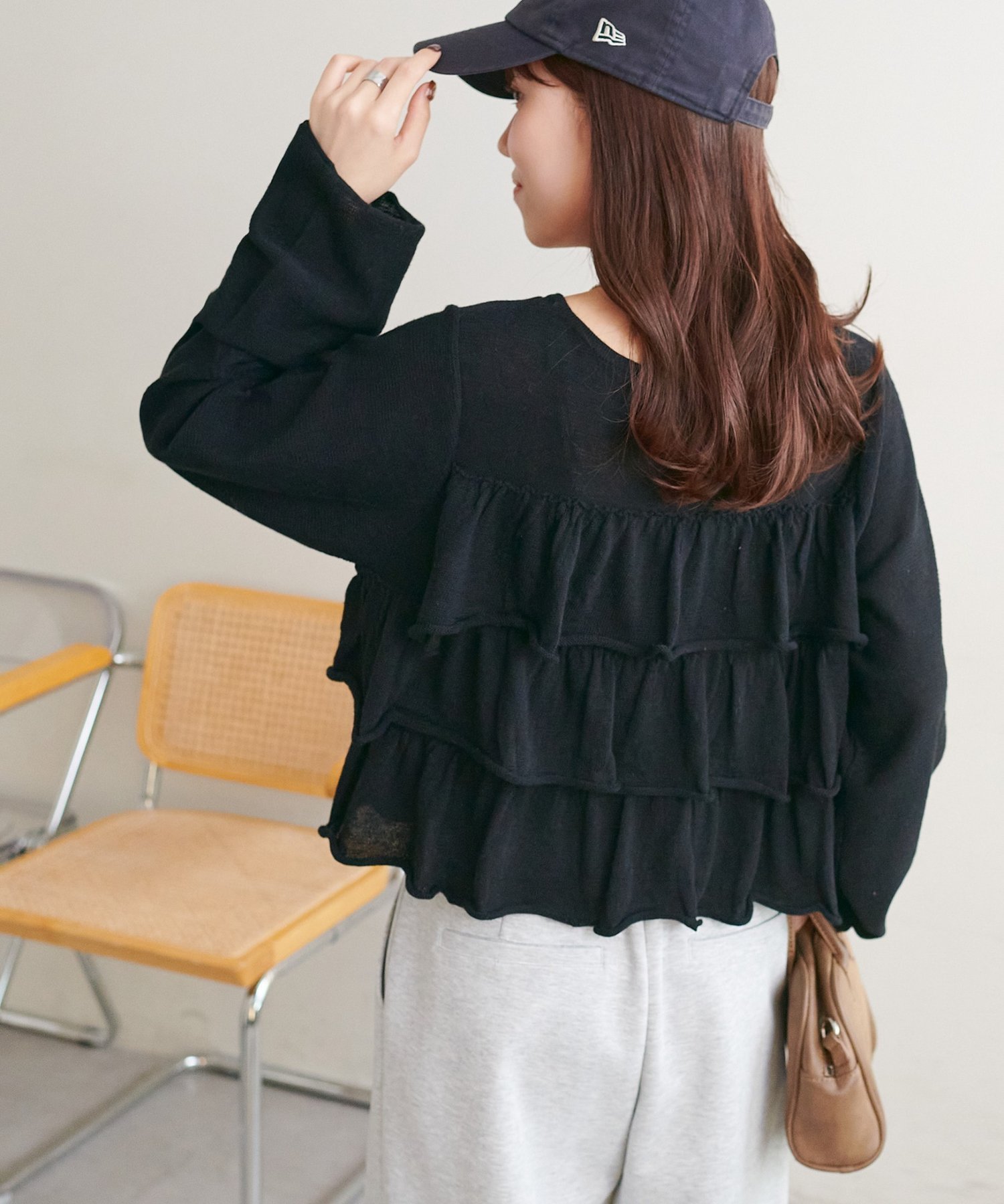 Сотрудник ростом 149 см: Длина достаточно большая, чтобы слегка прикрывать бедра, что позволяет легко сохранять равновесие даже людям невысокого роста. Оборки перекрывают друг друга, но горловина прозрачная, поэтому вы можете наслаждаться ощущением легкости♪