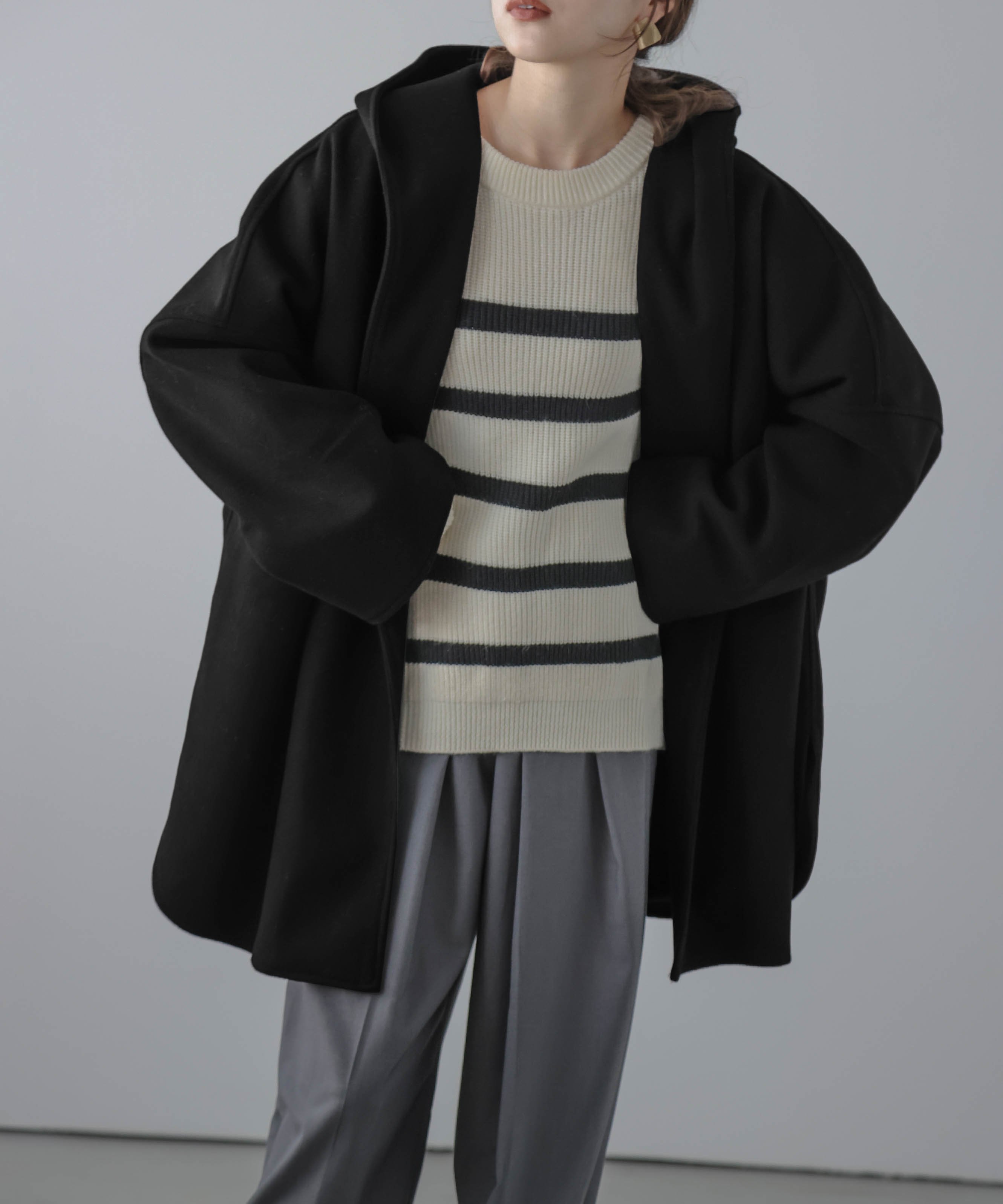 Этот объемный и теплый пончо с капюшоном имеет мягкую текстуру.