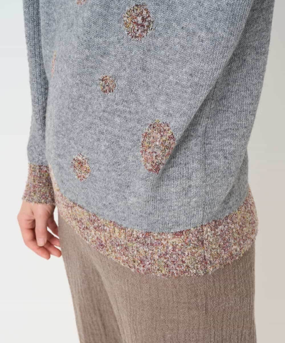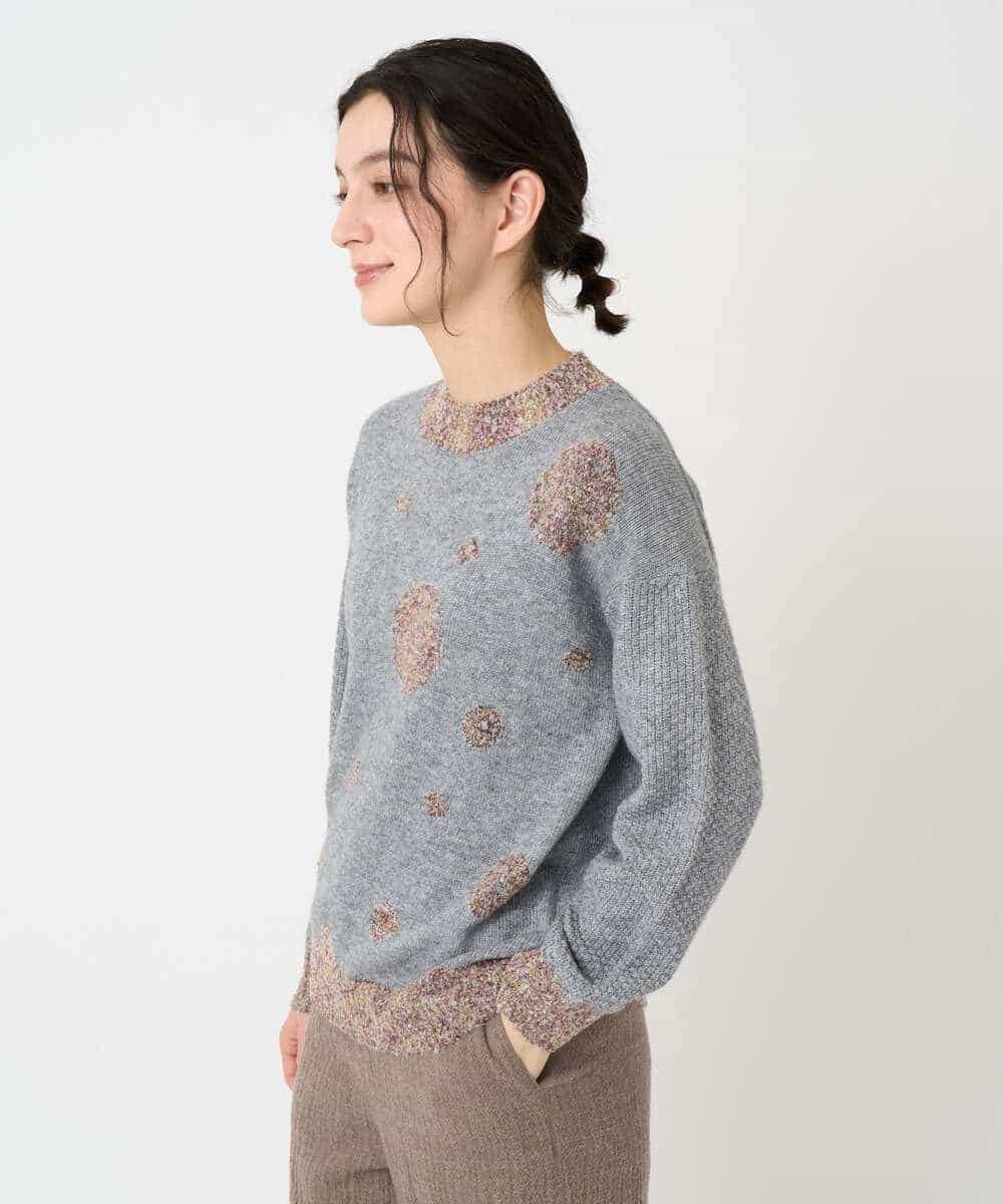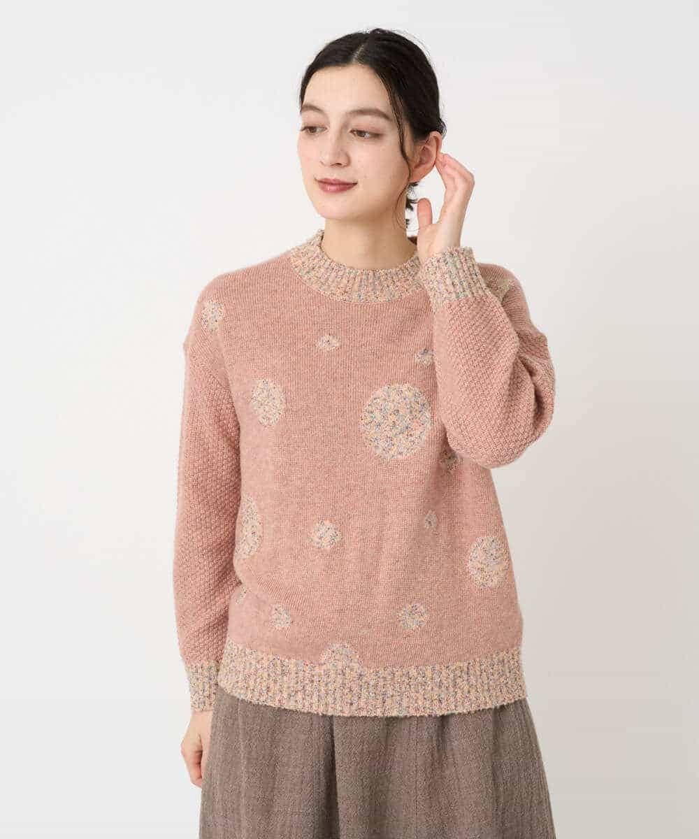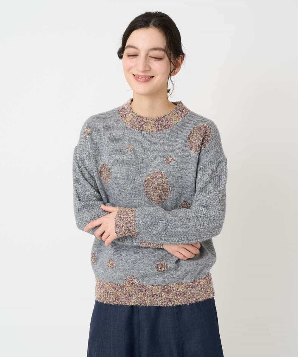 [Джаннило Джудиче, маленький размер] Теплый и стильный вязаный свитер в горошек с интарсией. Дизайн. Точки выполнены из специальной букле-пряжи, что оживляет монотонный узор. Рукава связаны в стиле каноко для создания повседневного образа. Слегка свободный силуэт дополняет узор в горошек, а центральная часть спинки также связана с изнаночной стороны для стильного акцента. Материал. Основная часть выполнена из шерстяной смеси средней толщины. Точки разного размера созданы методом интарсии. Смесовая букле-пряжа добавляет текстуру простому узору в горошек. Стиль/Рекомендации. Удобный крой обеспечивает достаточно места, не создавая ощущения громоздкости. Точки разного размера создают сбалансированный образ элегантности и гламура. Просто сочетайте его с простыми брюками или юбками для стильного образа. Этот универсальный дизайн легко сочетается с брюками или юбками, что делает его идеальной вещью на каждый день. Это отличный выбор для самостоятельного ношения или в качестве нижнего слоя под верхнюю одежду.