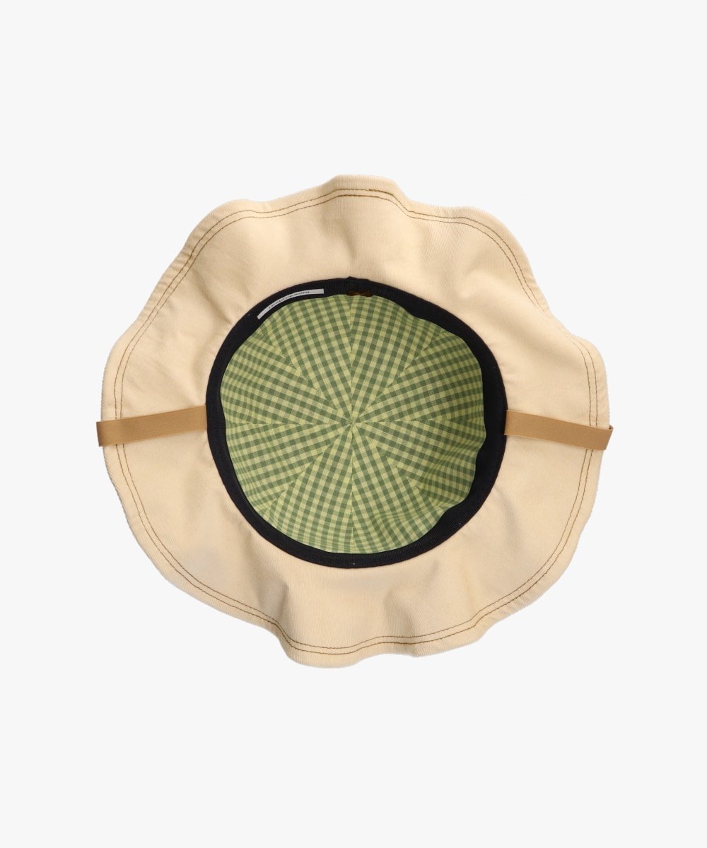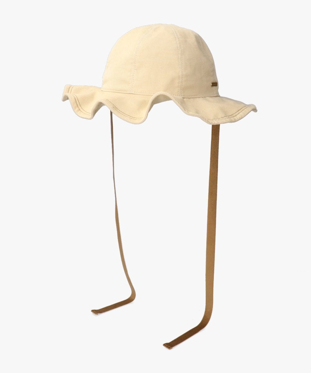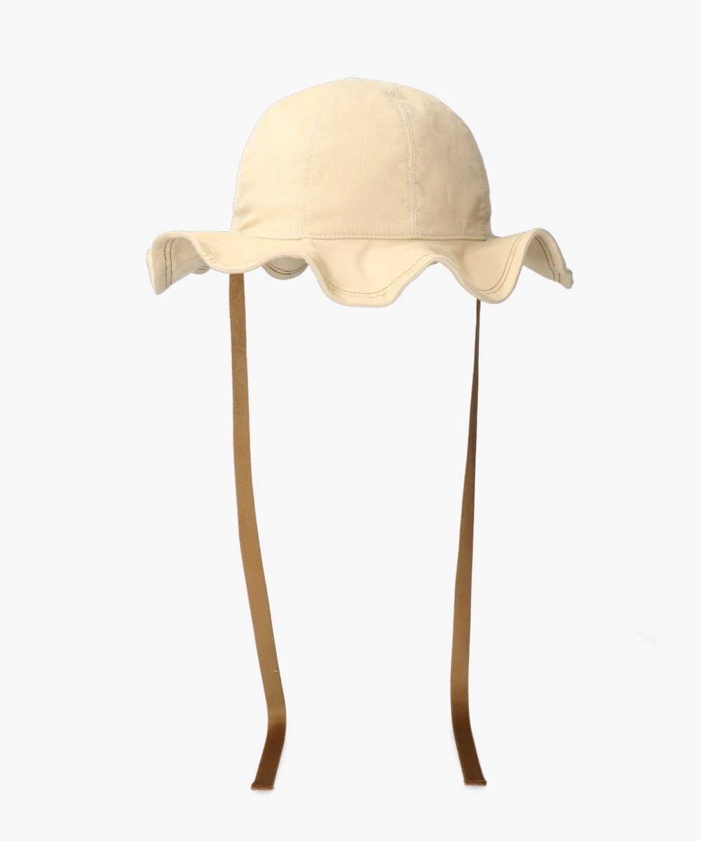 Эта шляпа с оборками теперь доступна в вельветовом варианте. Яркие оборки на полях производят сильное впечатление. Внутри полей есть проволочный каркас, поэтому вы можете свободно менять форму и наслаждаться ею. Материал имеет идеальную текстуру, что делает эту вещь подходящей для ношения с конца лета. Цветная строчка на полях добавляет изысканности. Это эффектная вещь, поэтому при создании образа придерживайтесь простоты.