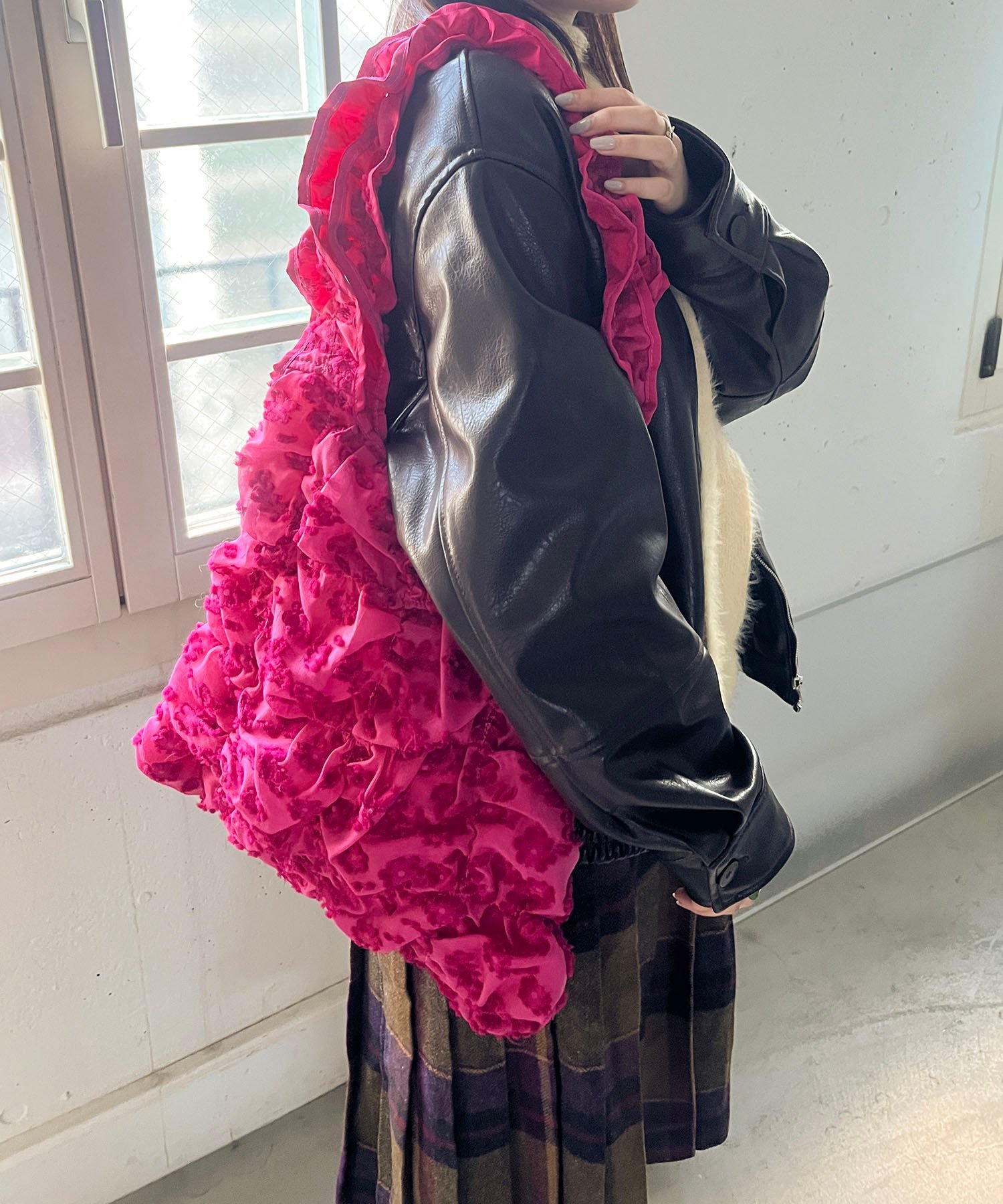 Эта великолепная жаккардовая сумка-тоут непременно привлечет ваше внимание и станет центральным элементом вашего образа. Универсальные ручки позволяют носить ее на плече, а контрастная текстура подкладки добавляет уникальный штрих. Впечатляющая вместимость позволяет хранить файлы формата А4 как вертикально, так и горизонтально, а также кошелек, блокнот и бутылку воды объемом 500 мл. Она хорошо сочетается с осенней и зимней верхней одеждой, такой как шерстяные пальто и пуховые куртки, и дополняет повседневные и милые наряды. *Фактический цвет изделия может немного отличаться от изображения из-за освещения и углов обзора. Обратите внимание, что фактический размер также может немного отличаться от изображения. *Перед покупкой обязательно проверьте этикетку качества и бирку с информацией. *casselini — японский бренд модной одежды и аксессуаров, основанный в 1987 году.