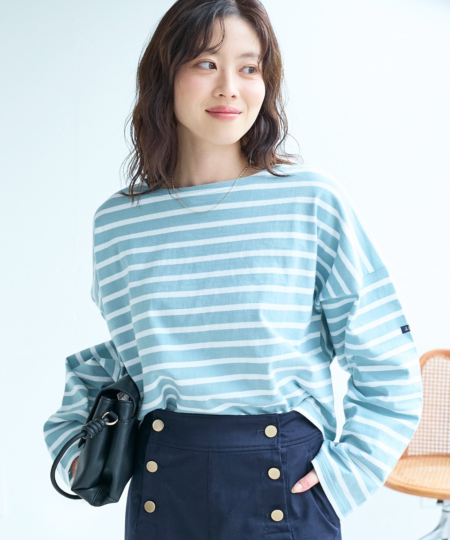 Этот полосатый топ выполнен из высококачественных материалов, характерных для Le minor, и имеет свободный, короткий силуэт.