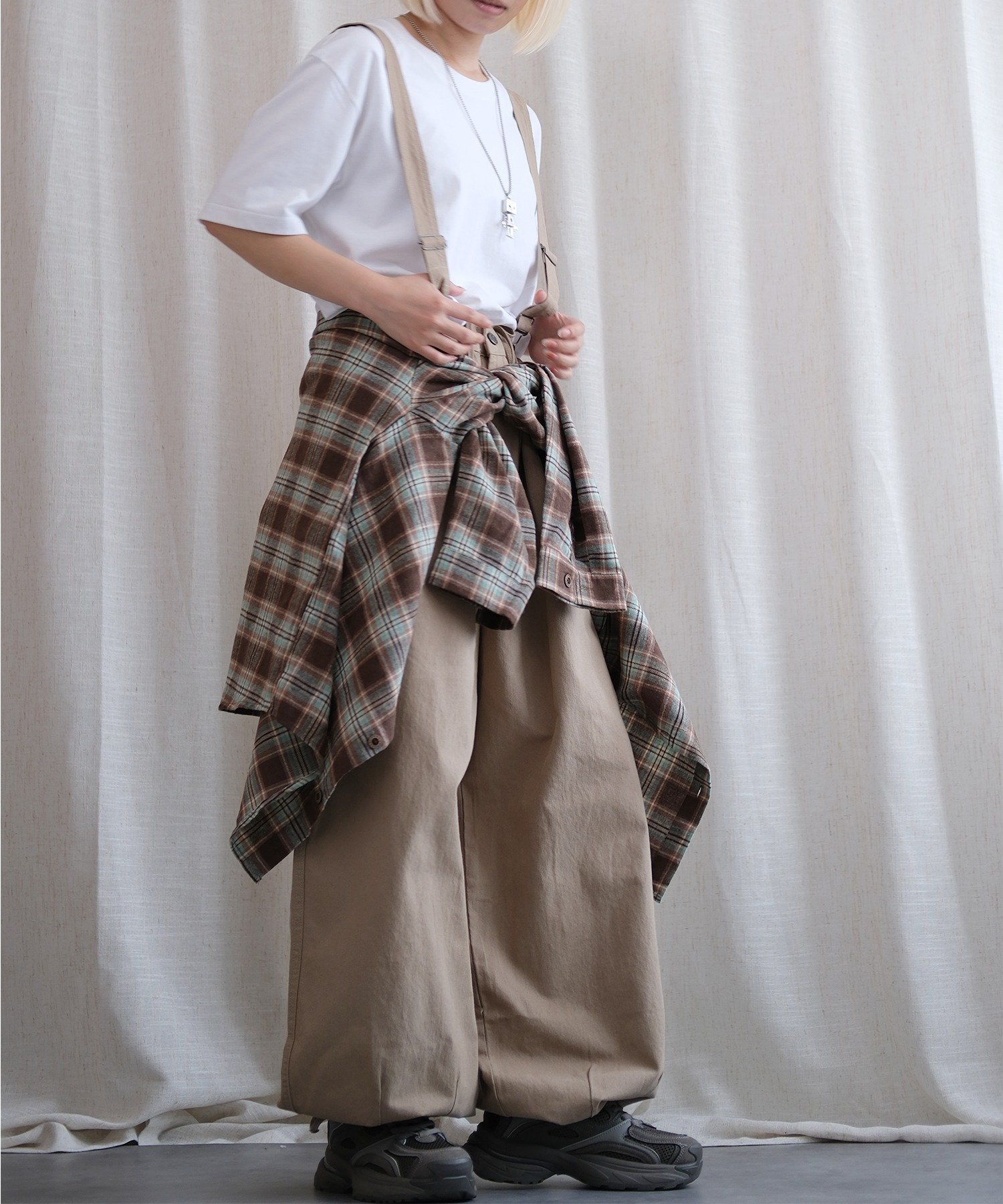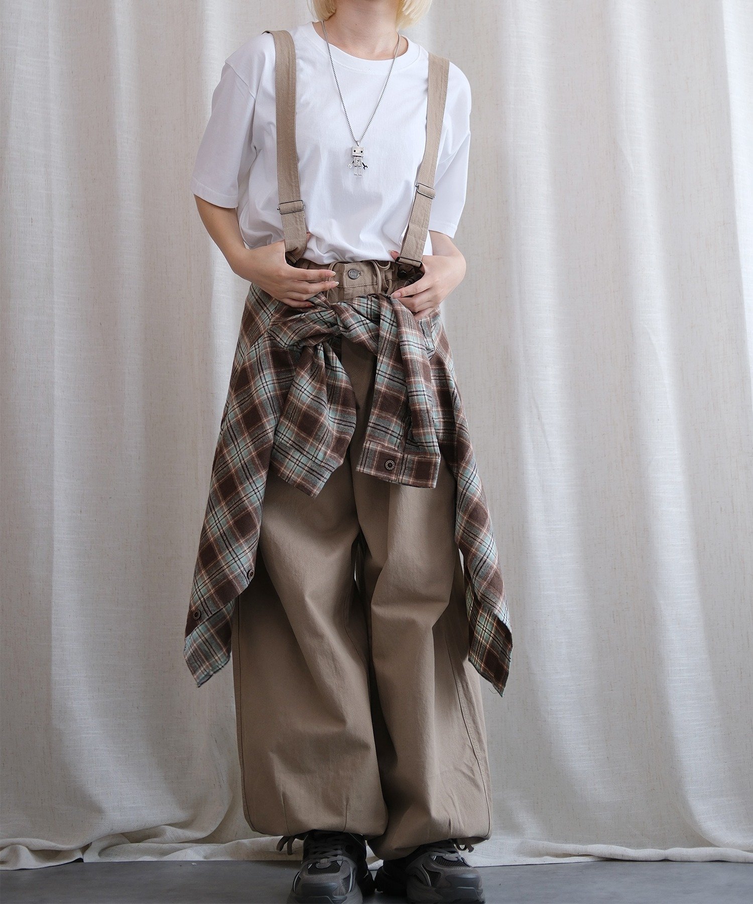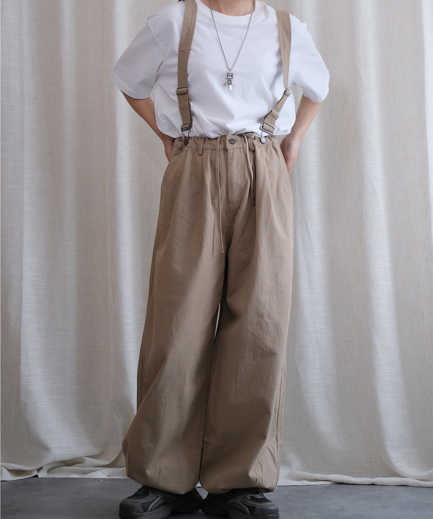 Эти рабочие брюки оснащены двусторонними армейскими подтяжками, создающими модный объемный силуэт.