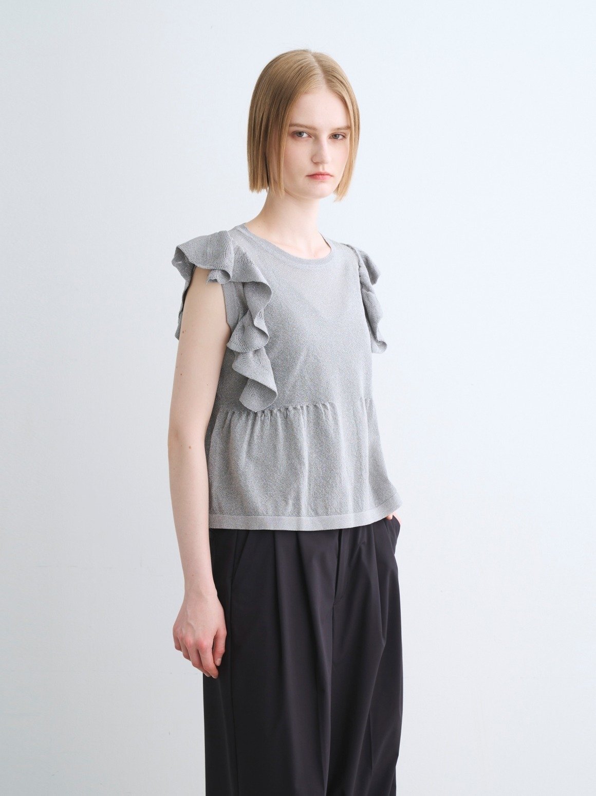 Блестящий свитер с оборками Three Dots, цвет Grey