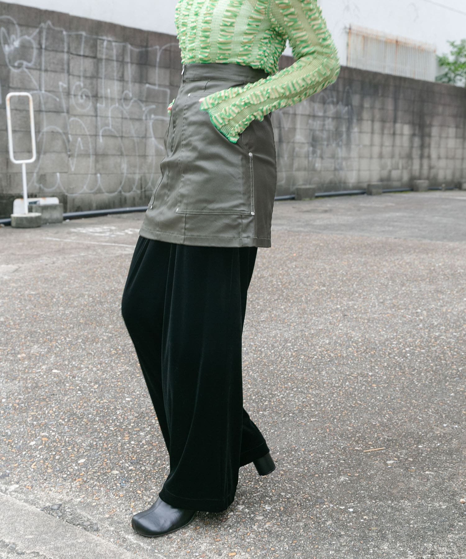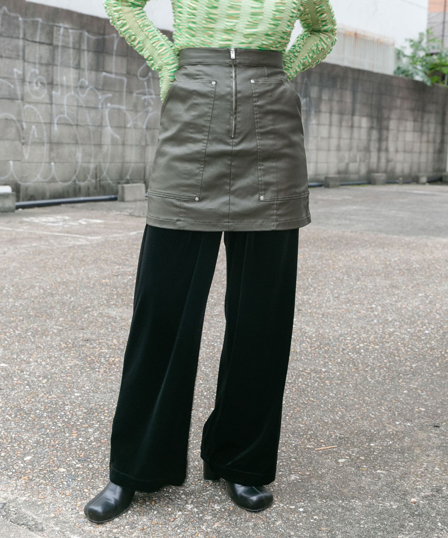 Эта мини-юбка имеет текстуру, напоминающую кожу, благодаря саржевому покрытию. Слегка матовый блеск делает ее комфортной в ношении, не создавая ощущения излишней жесткости. Она идеально подходит как мини-юбка, так и в сочетании с брюками для создания стильного образа.