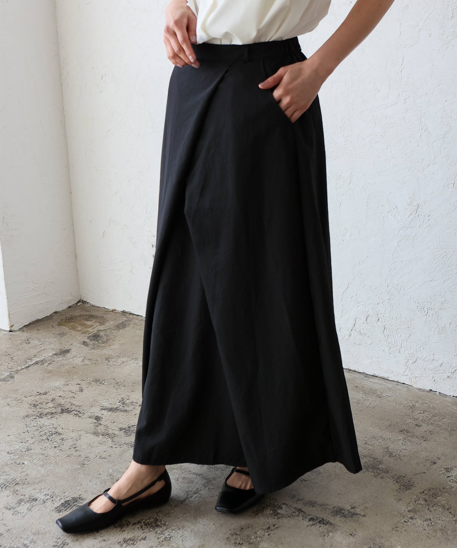 Подол не слишком расширяется, создавая прямой, солидный, повседневный силуэт, а передние складки создают эффект стройности, помогая скрыть недостатки фигуры.