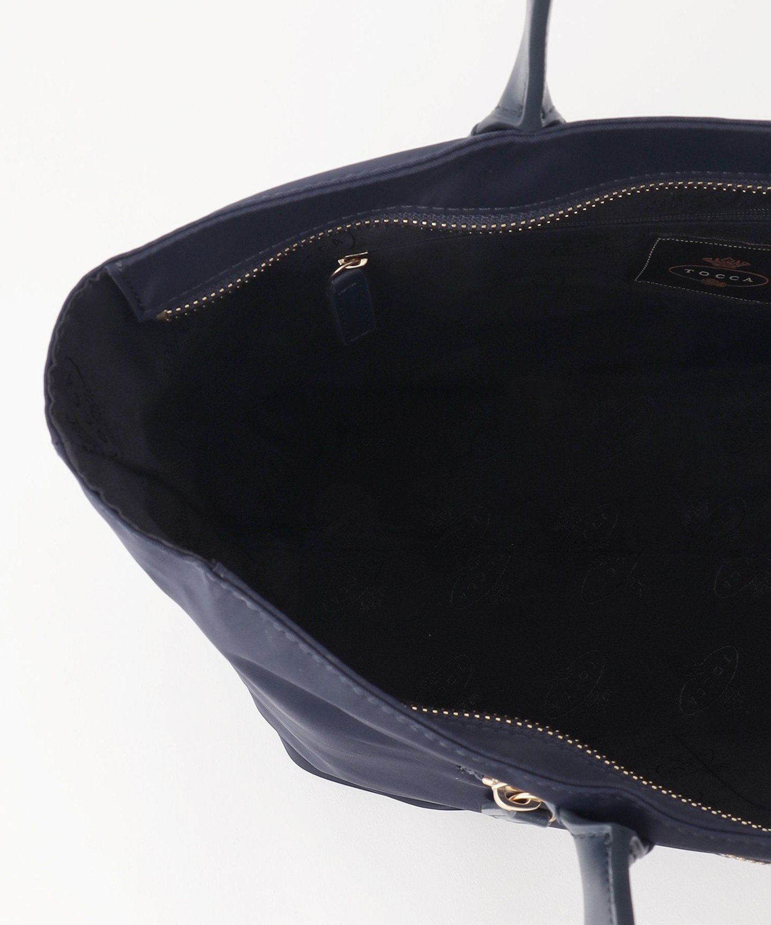 Металлические акценты на брелоке, логотипе и молнии придают ей благородный и слегка изящный вид, характерный для TOCCA. Основание ручки также украшено узором в виде лаврового листа, который, как говорят, символизирует победу и славу.