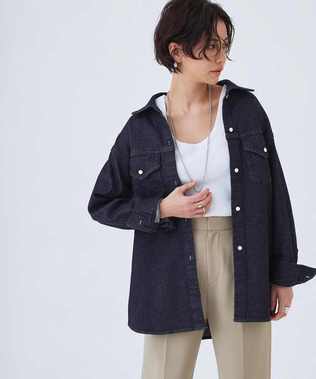Джинсовая куртка с деталями, напоминающими рубашку, которую можно носить как верхнюю одежду. Умеренно свободный крой создаёт расслабленный и утончённый образ, как только вы её наденете. Мужской дизайн клапанов и кокетки подчёркивается продуманным использованием изящных пуговиц, что делает её элегантной вещью.