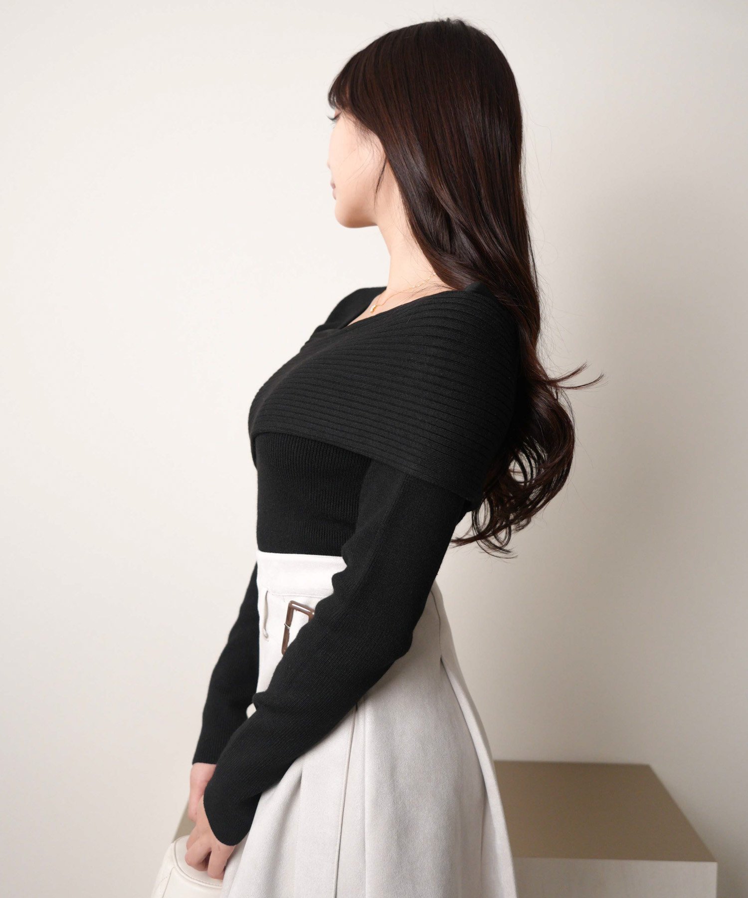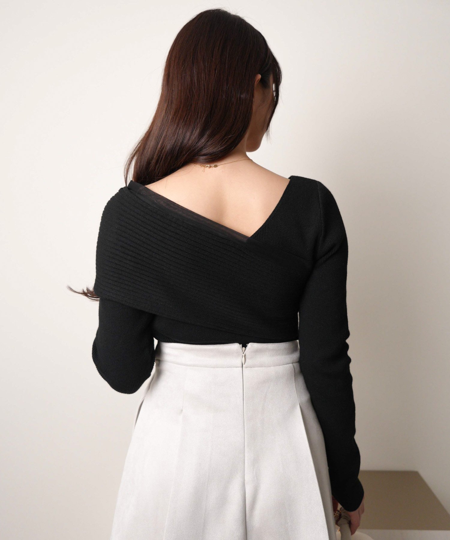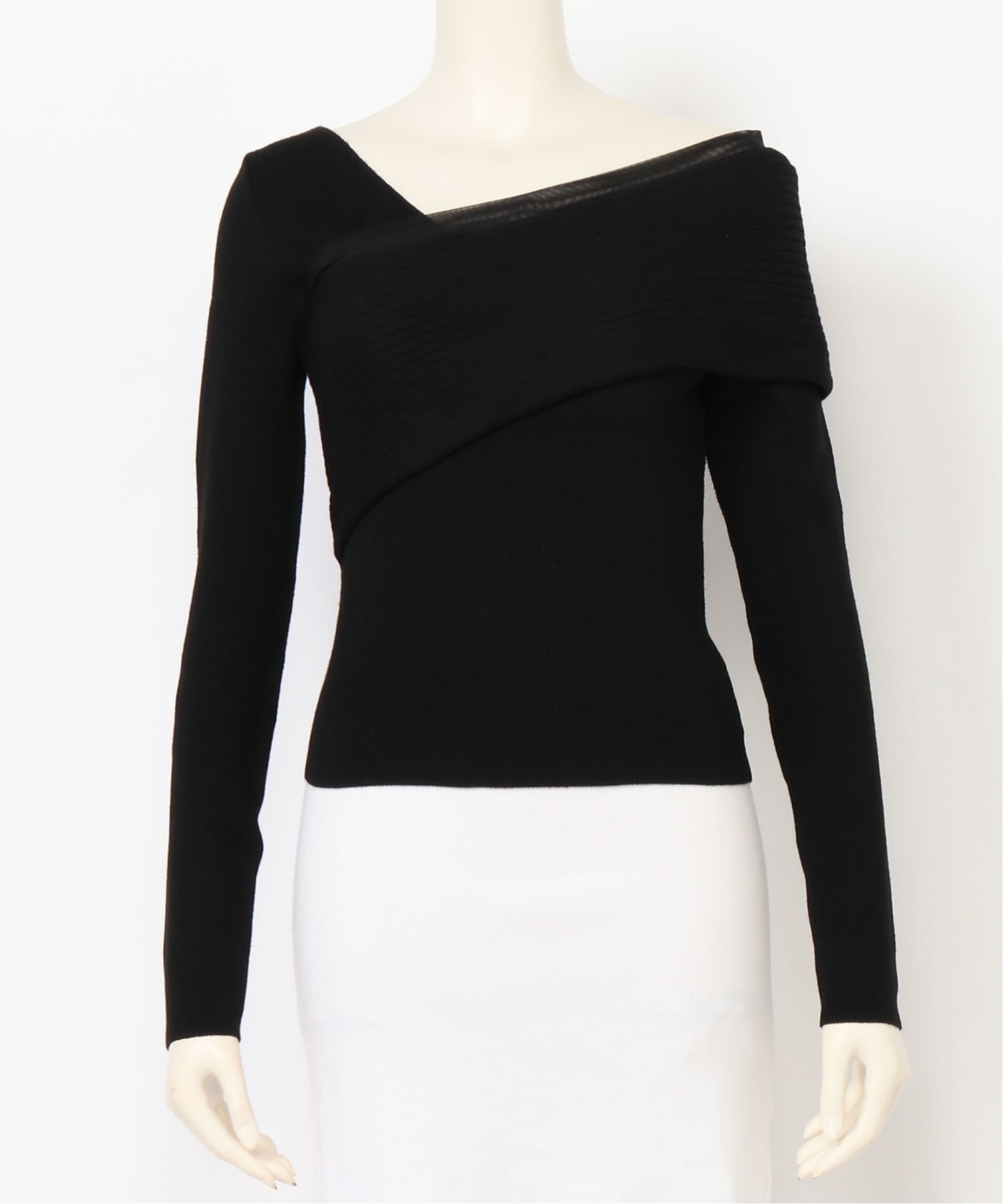 - Базовый, но легко сочетающийся топ с асимметричным дизайном плеч.
