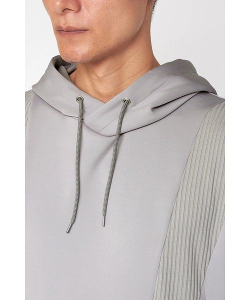 Свободный пуловер с капюшоном и ребристым комбинированным дизайном.