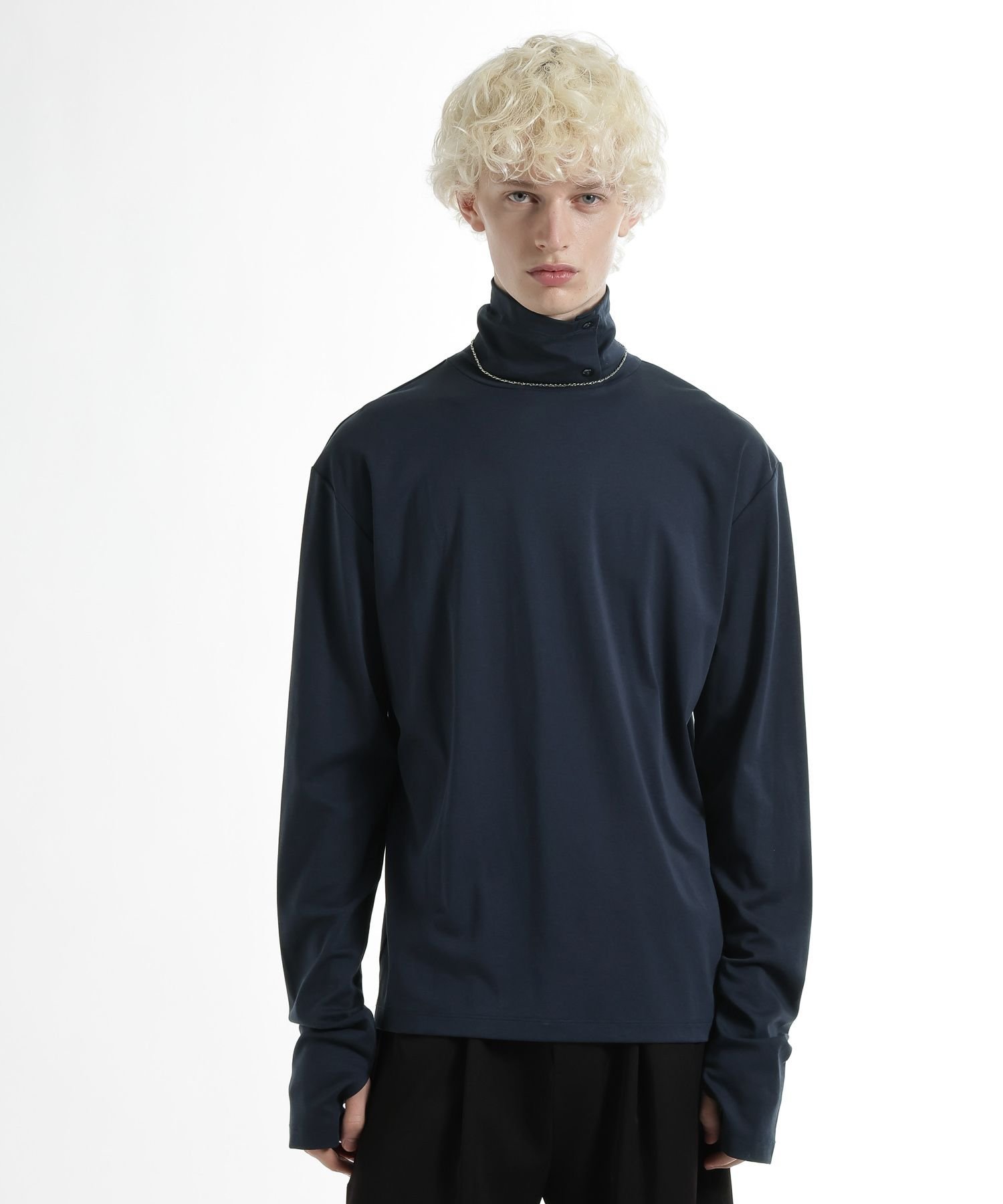 Обязательная покупка этого сезона: топ с высоким воротником и пуговицами вокруг шеи добавляет глубины многослойным образам.
