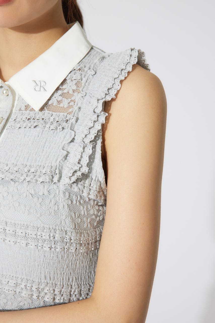 Небольшие оборки вокруг плеч закрывают верхнюю часть рук, создавая силуэт, который выглядит стройным даже в платье без рукавов.