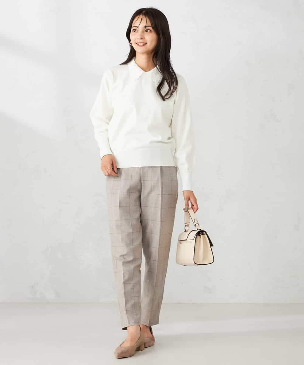 - Трикотажный пуловер с кружевным воротником в качестве изюминки.