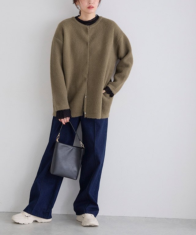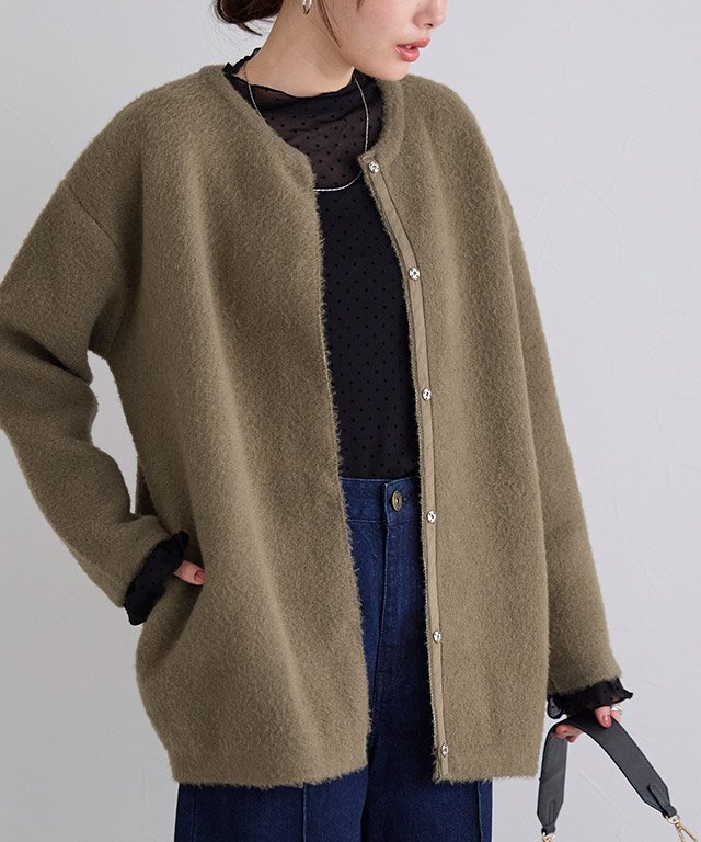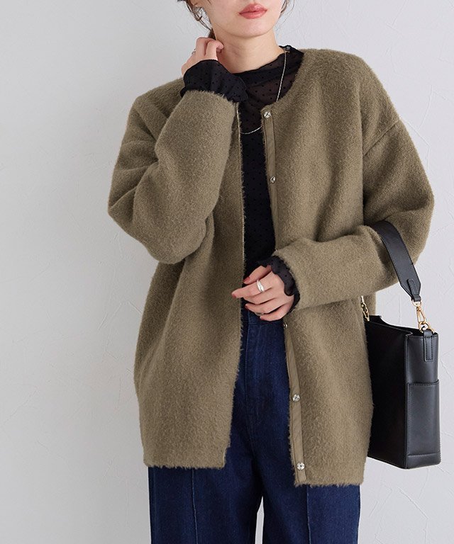 Кардиган «Кокон без воротника» имеет силуэт, который отлично смотрится сам по себе.