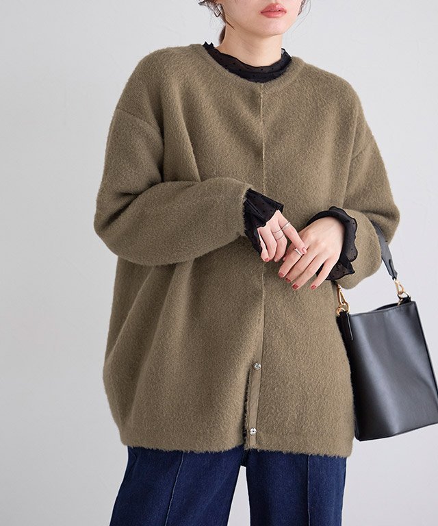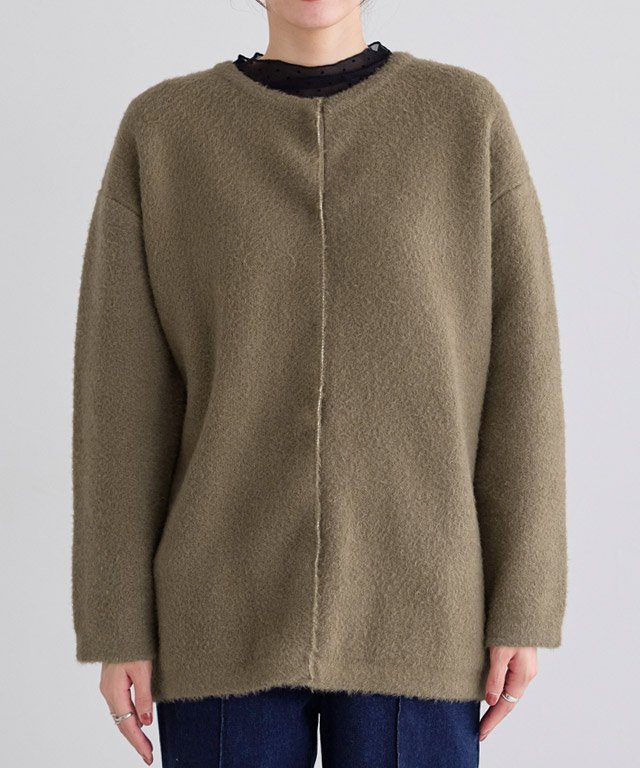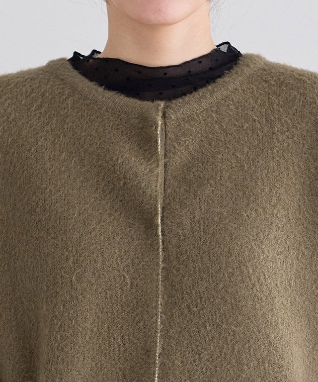 Мягкий материал приятен на ощупь. Свободный силуэт в сочетании с пушистым материалом создает женственный образ. Изнаночная сторона связана из мягкой, упругой пряжи, что придает ей необходимую плотность, а также привлекательность благодаря легкости и комфорту.