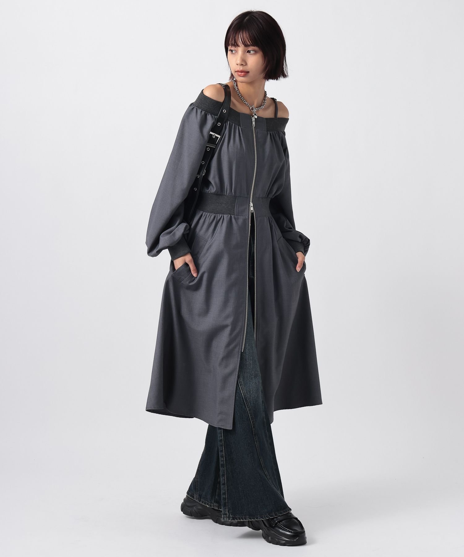 Двойная молния позволяет регулировать размер, что делает его многофункциональным изделием, которое также можно носить как жакет.