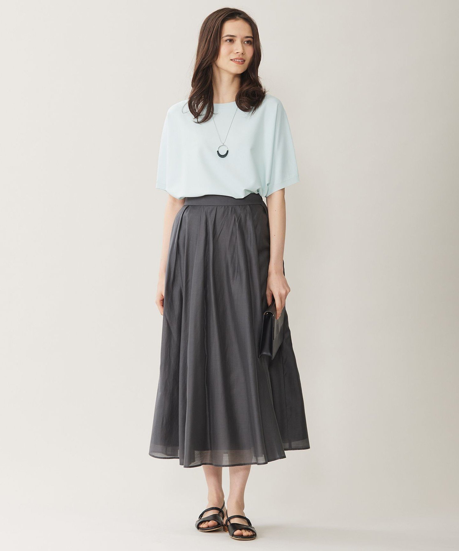 Приятная на ощупь и блокирующая УФ-излучение! Этот трикотаж «летучая мышь» можно носить как блузку. Дизайн: Этот трикотаж «летучая мышь» создает ощущение расслабленности. Простой, но слегка драпированный низ создает женственный и элегантный образ. Он хорошо сочетается с различными вариантами низа и может быть подобран к различным нарядам. Цвет «белый и черный в полоску» (101) доступен эксклюзивно онлайн. Материал: Изготовлен из скрученной пряжи из вискозы и эластичного полиэстера. Эластичность обеспечивает свободу движений и облегает тело, обеспечивая комфортную посадку. Плотно скрученная пряжа создает крепоподобную поверхность, обеспечивая сухость, свежесть и освежающую прохладу, а также элегантную драпировку. В этом году он был обновлен с добавлением охлаждающих свойств и защиты от УФ-излучения для еще большего комфорта. Тот же материал: Трикотажный пуловер (KRWRCM0452)