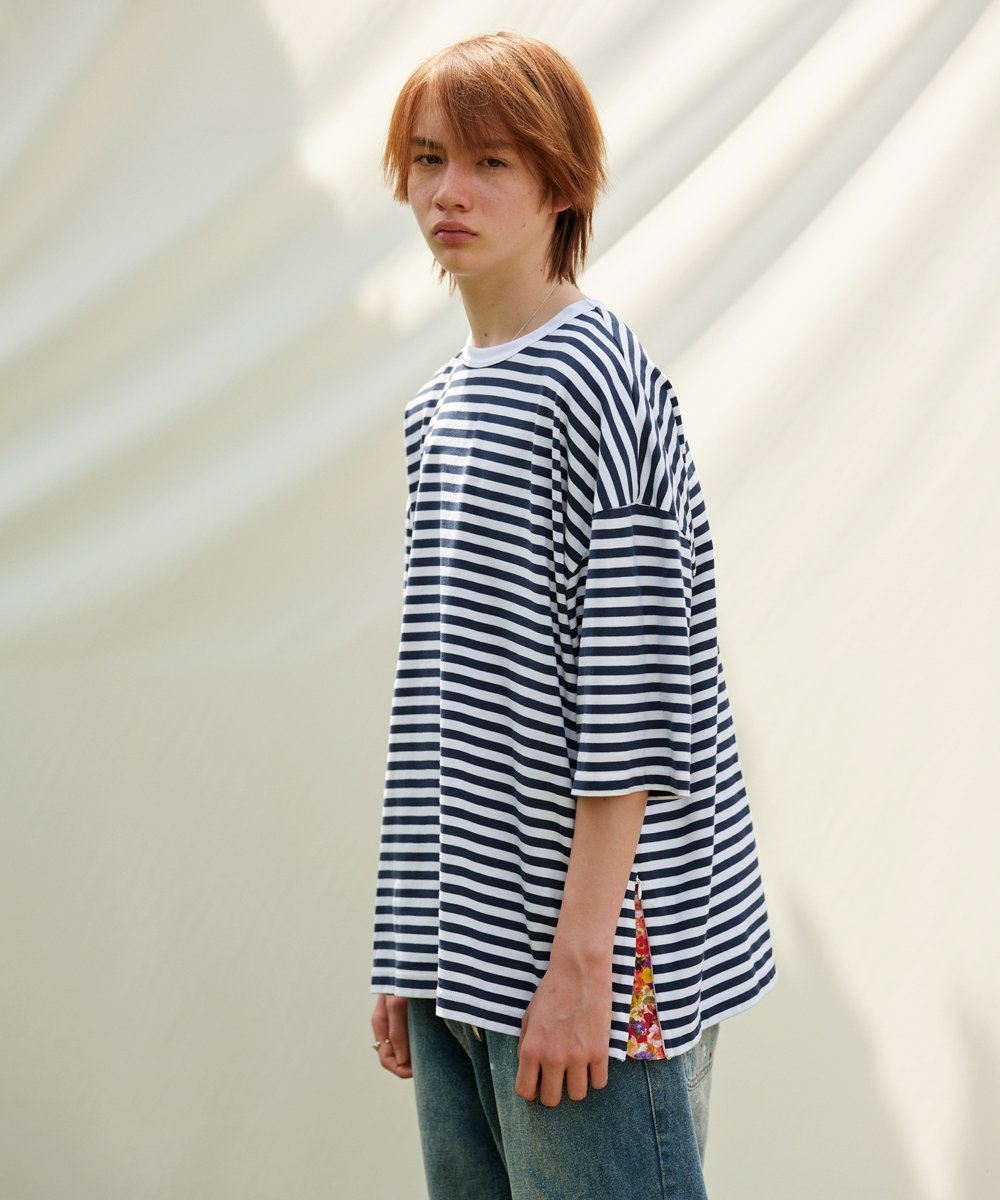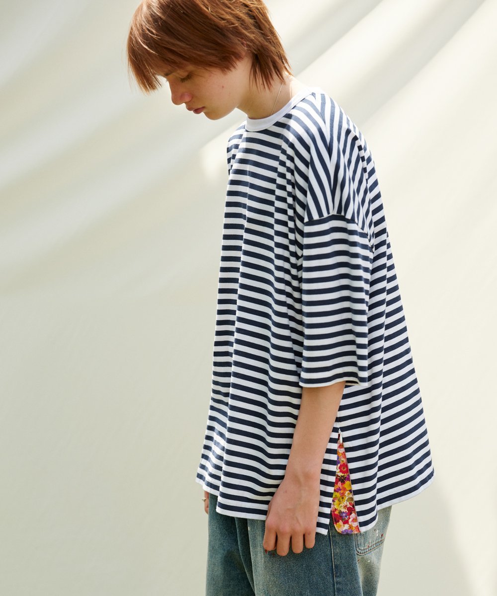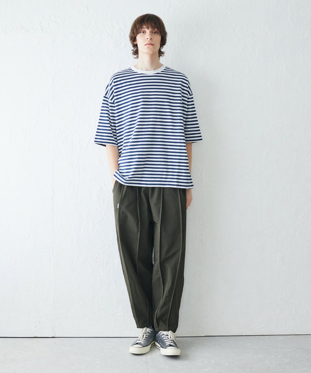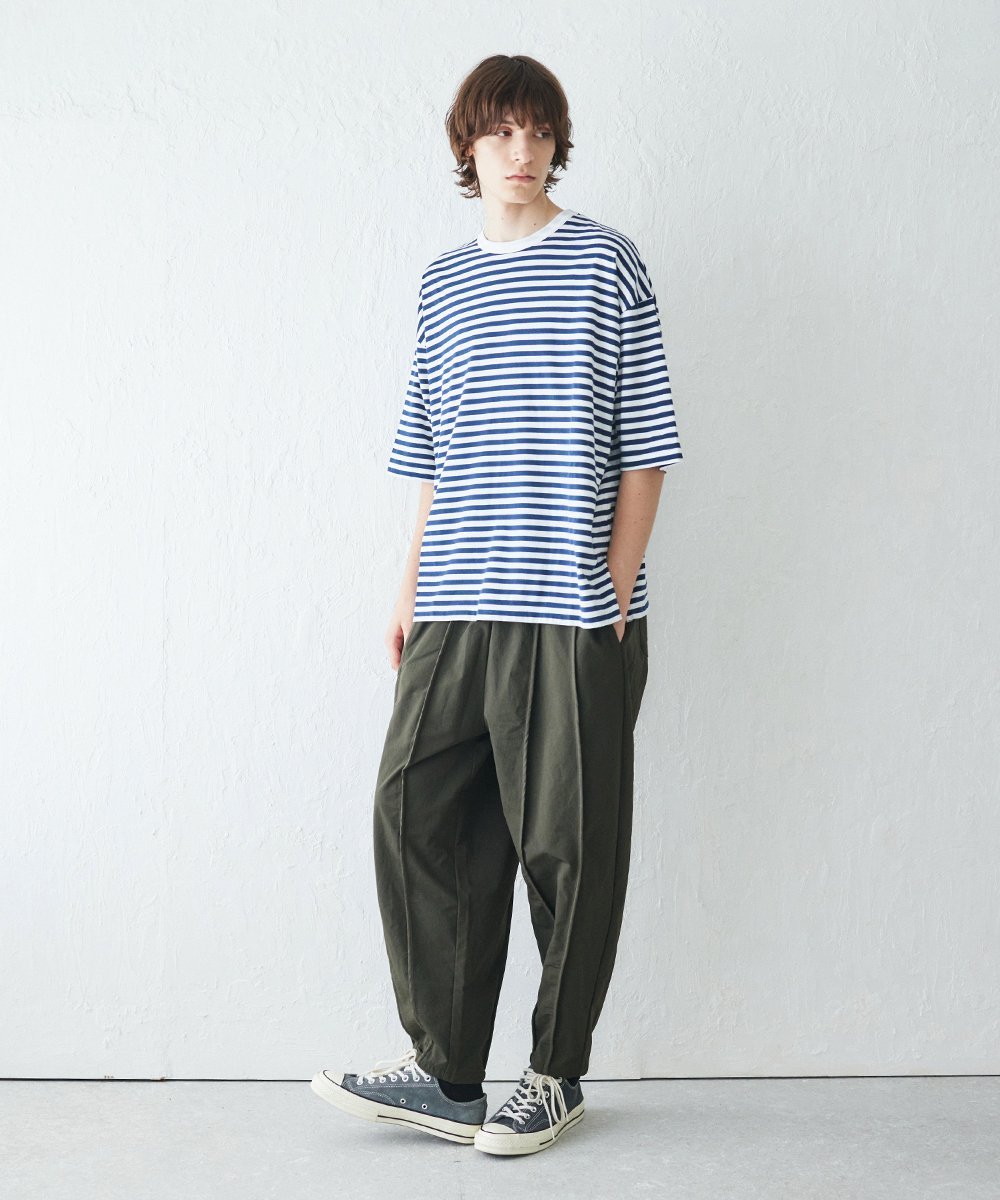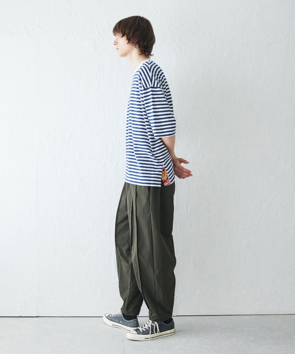 Изготовлено из плотной, толстой полосатой ткани из 100% хлопка. Для придания ткани приятной на ощупь текстуры используется американская пряжа, полученная методом пневматического прядения. Эта ткань удобна в ношении в условиях влажного климата Японии.